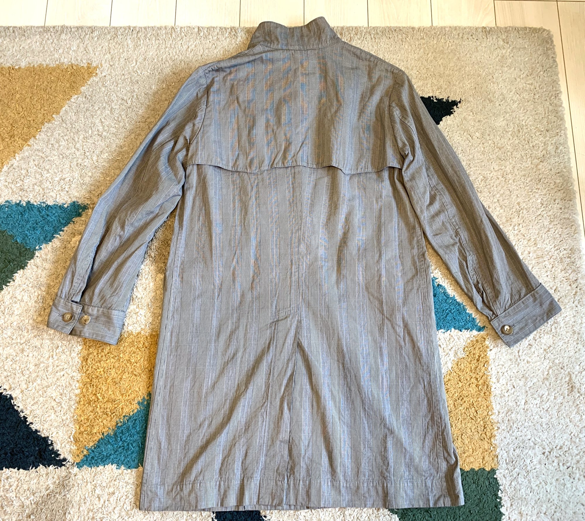Up for sale here is an over coat from Japan’s 45 rpm label. 45 rpm continually produce some really high quality pieces, using innovative fabrics and a high level of hand detailing. They are probably best known for their indigo products, although they produce a full range of clothing as well.