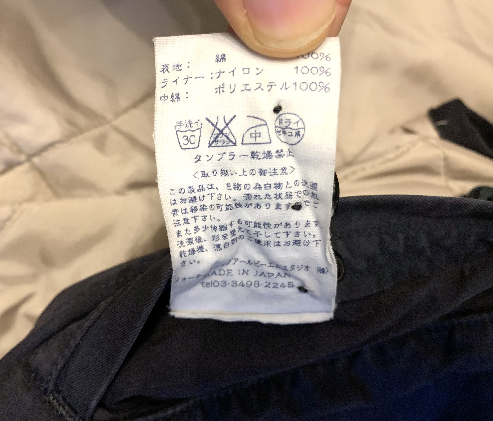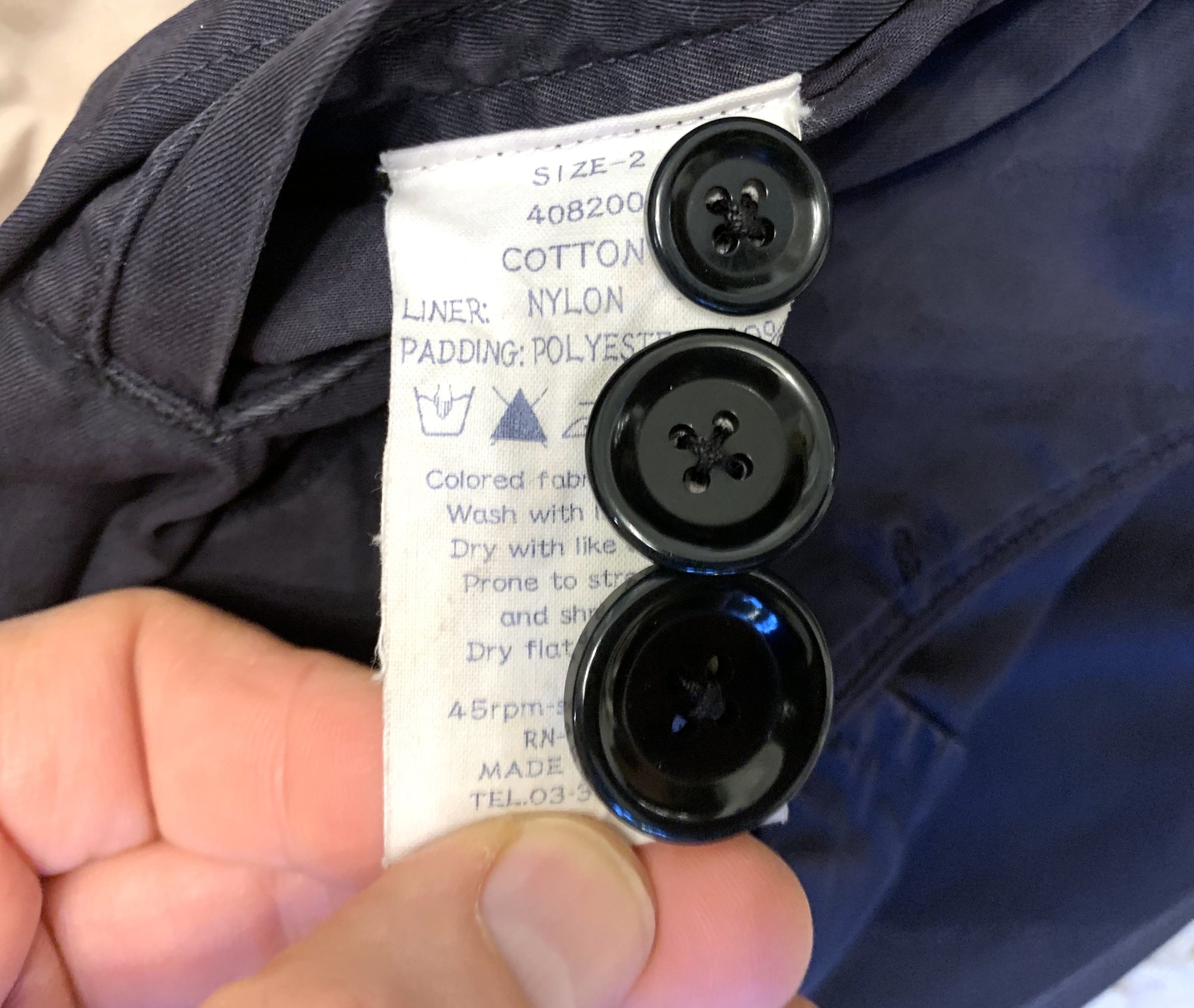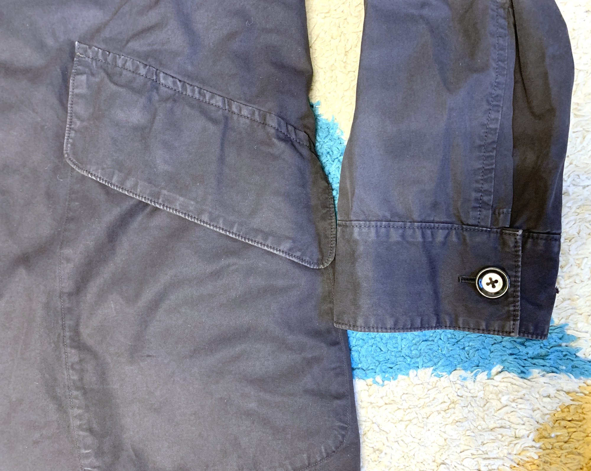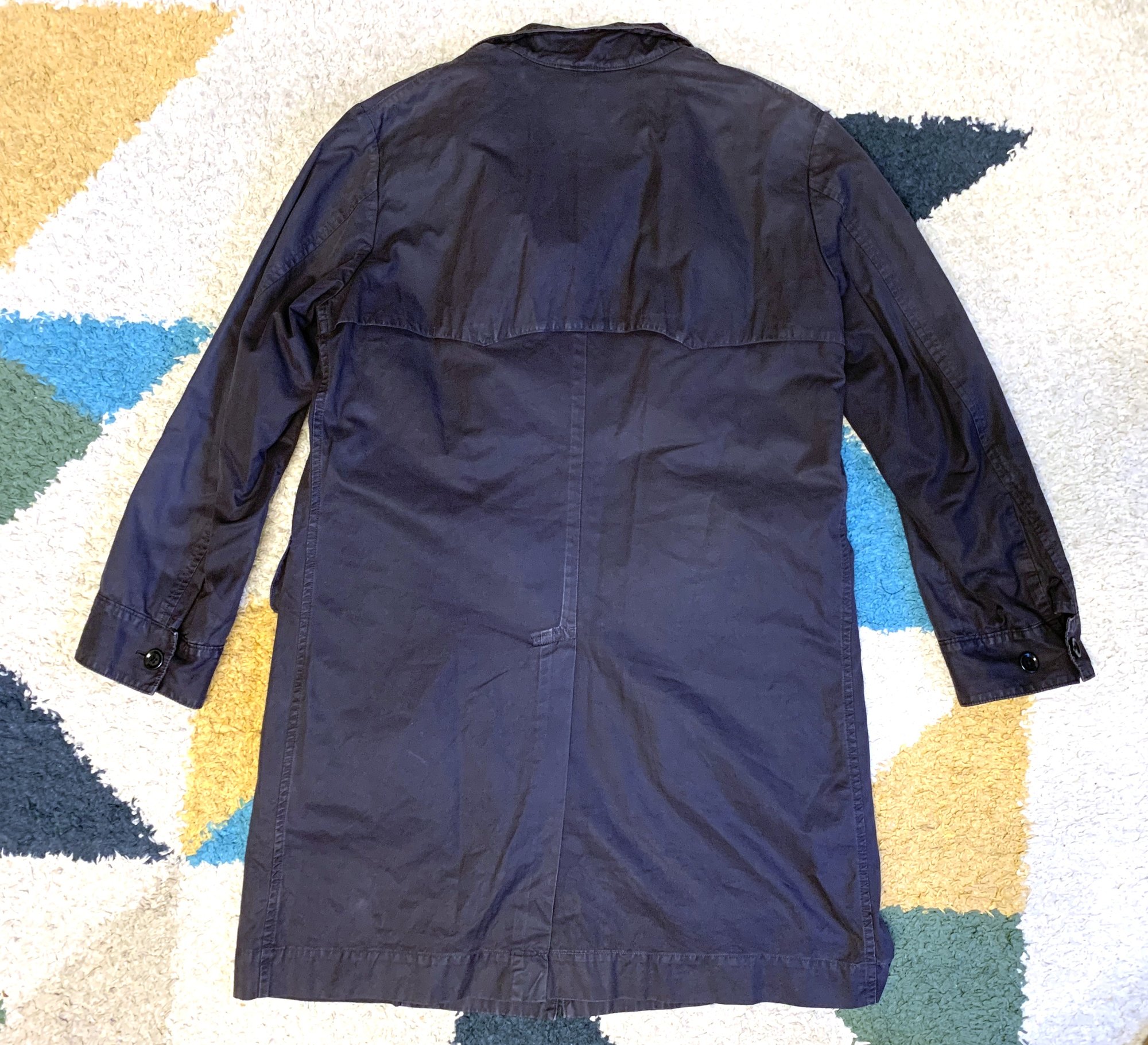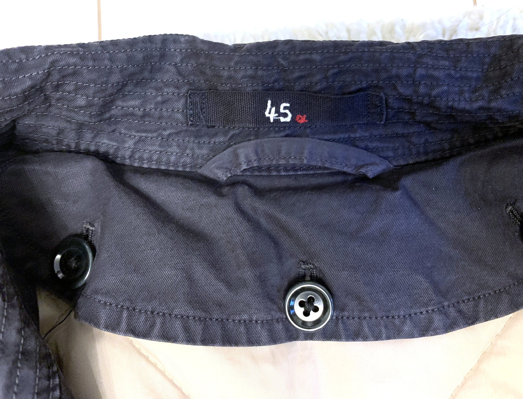 Size is labeled a 2, fitting a medium well in this case. I measure the chest at 22” / 55cm, shoulders at 18.5” / 47cm, length at 37” / 93cm from the base of the neck, and sleeves at 23.5” / 60cm from the shoulder. The jacket comes lightly used, good shape. There is some general wear and fading but no holes, tears, stains or obvious signs of wear. Made in Japan.