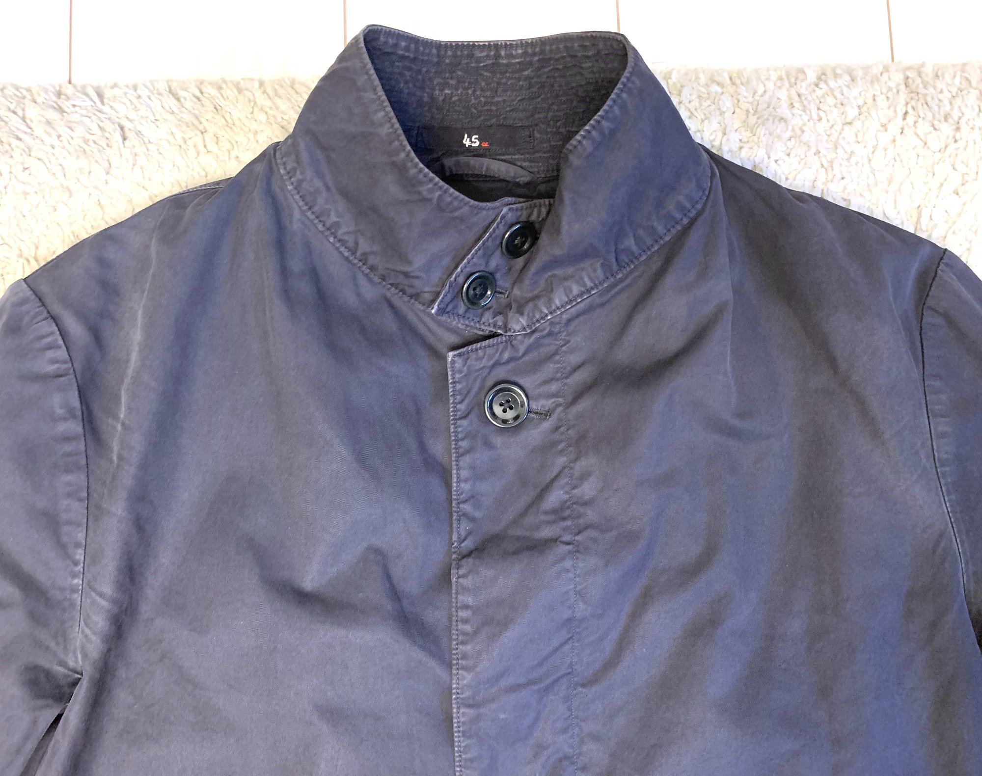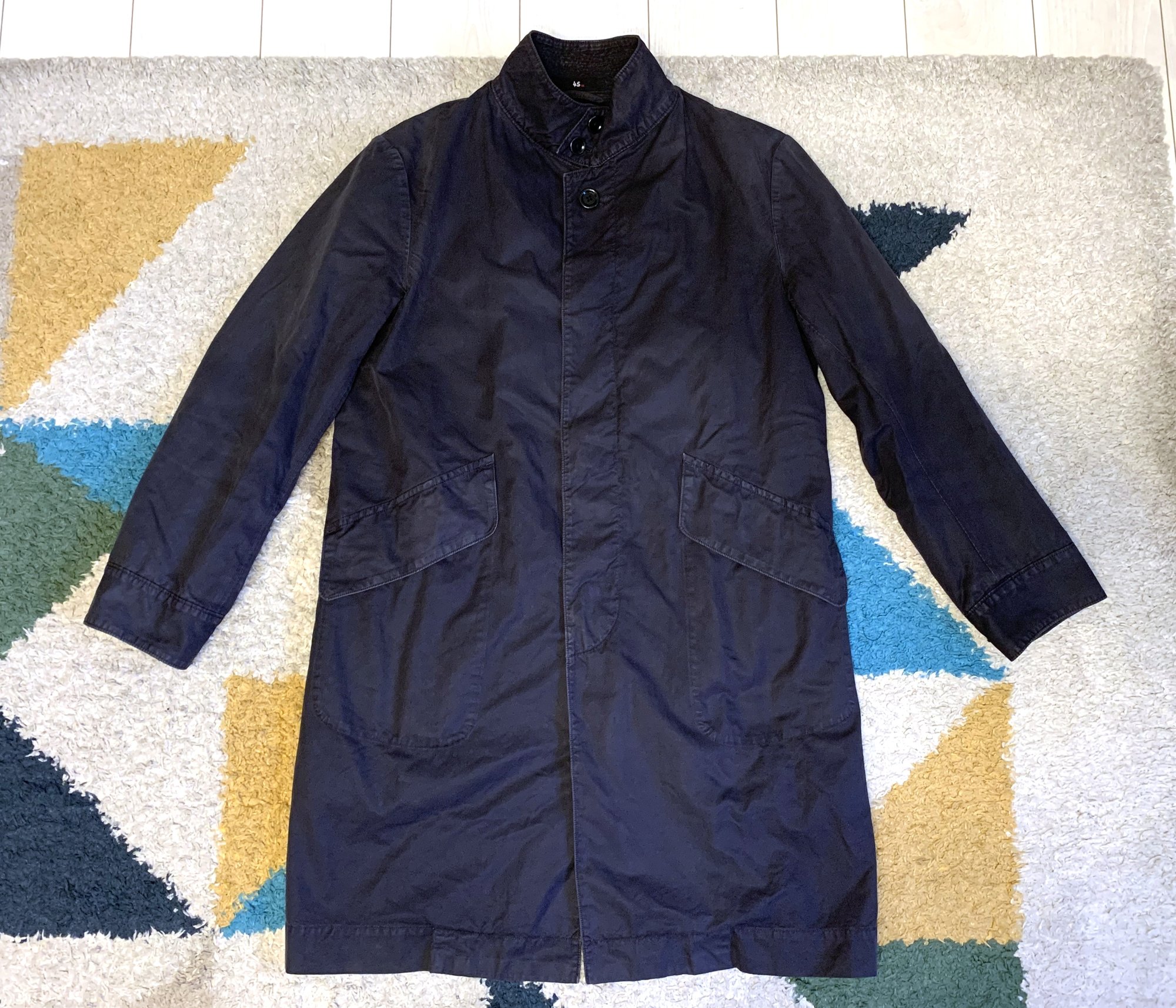 Up for sale here is an over coat from Japan’s 45 rpm label. 45 rpm continually produce some really high quality pieces, using innovative fabrics and a high level of hand detailing. They are probably best known for their indigo products, although they produce a full range of clothing as well.