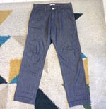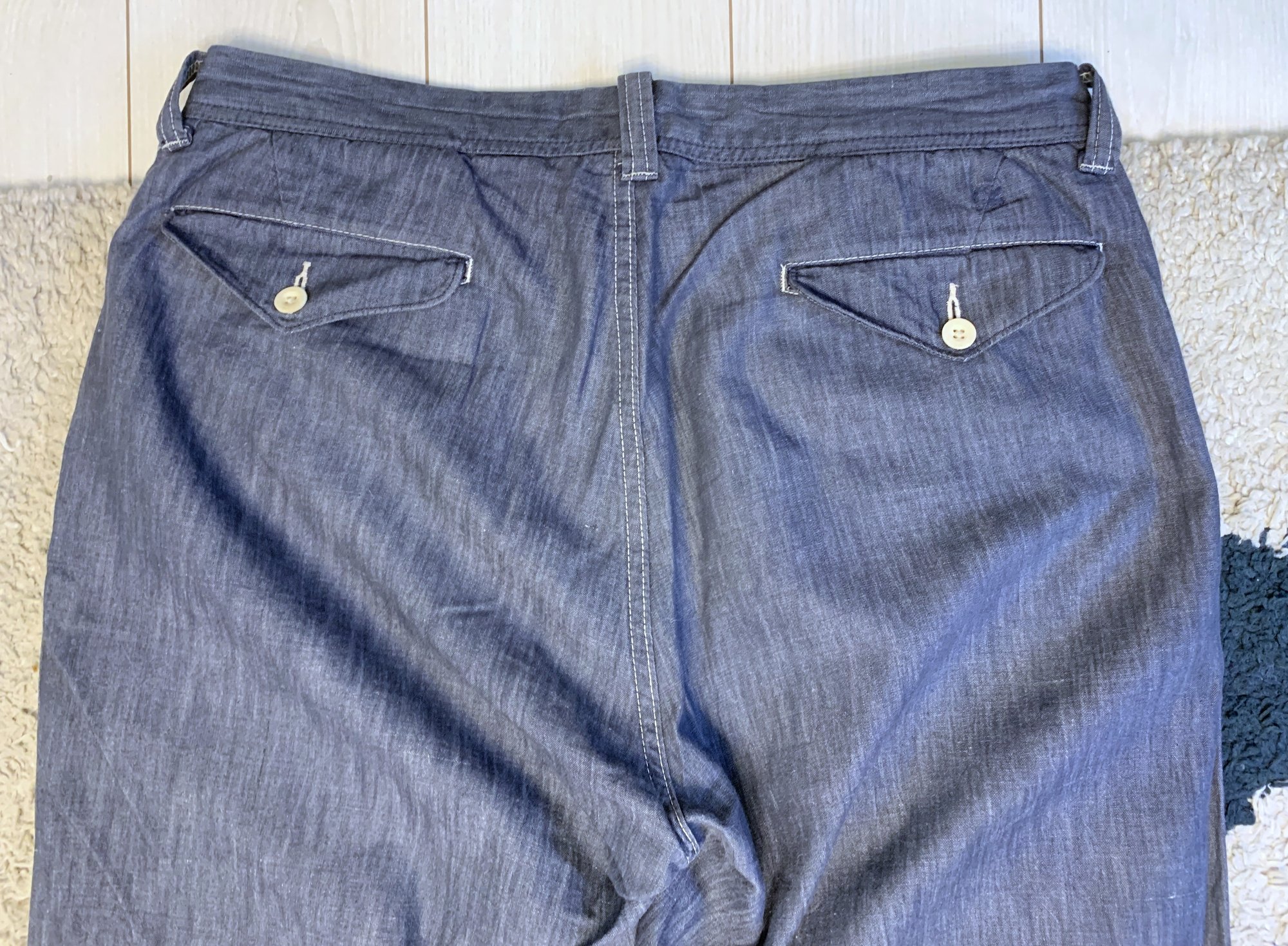 Size is labeled a 34. However, I measure the waist at 33” / 86cm. Inseam is 32” / 82cm, rise is 11.5” / 29cm and leg opening is 8.25” / 21cm. Fit is classic: not too baggy or too tight. These will go with pretty much everything and keep you cool throughout the summer. The pants come in lightly used, very good shape with no holes, tears or stains. Made in Japan.