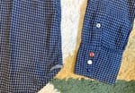 So what we have with this shirt is a deceptively simple plaid button down in medium weight. The selling point, unsurprisingly, is the indigo dye. What you have here is indigo dyed threads, done in varying shades of blue, woven together to create the plaid pattern you see. The process is similar to what you would see with an indigo hickory stripe, for example, although much more involved due to the weave. 45 rpm uses natural indigo dyes, a bit more difficult and time-consuming compared to synthetic dyes, but with a much richer color given to it.