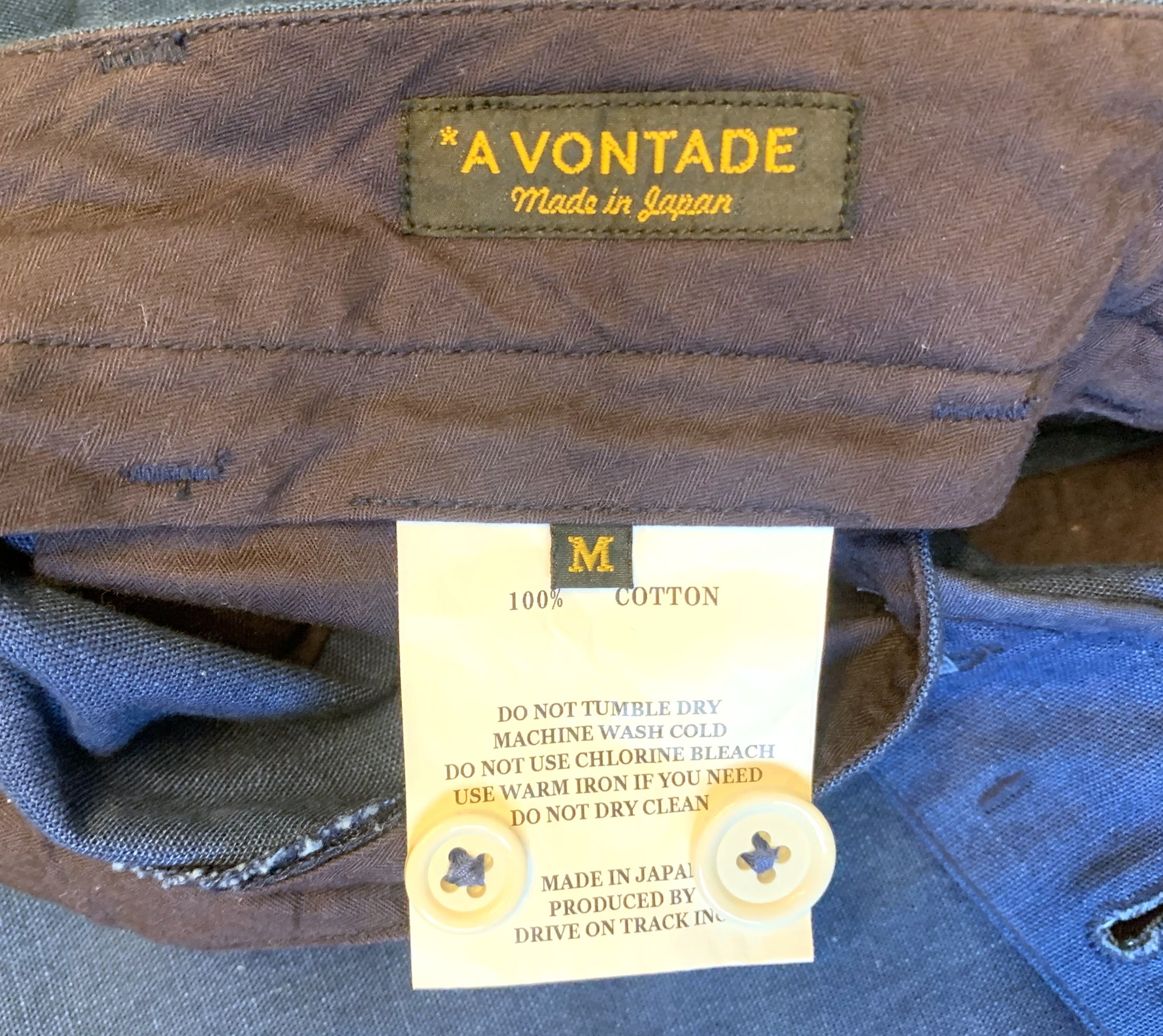 Up for sale here is a pair of pants from the A Vontade label. A Vontade has been active since around 2011, making them a somewhat newer label, although they are one of the brands that mines vintage work, sports and military wear as points of inspiration in developing their clothing. For A Vontade the emphasis is on everyday casual wear, the sort of things you can wear to work or around the house, nothing too formal. They design with longevity in mind, making pieces that are timeless in design and that will only get better with age.