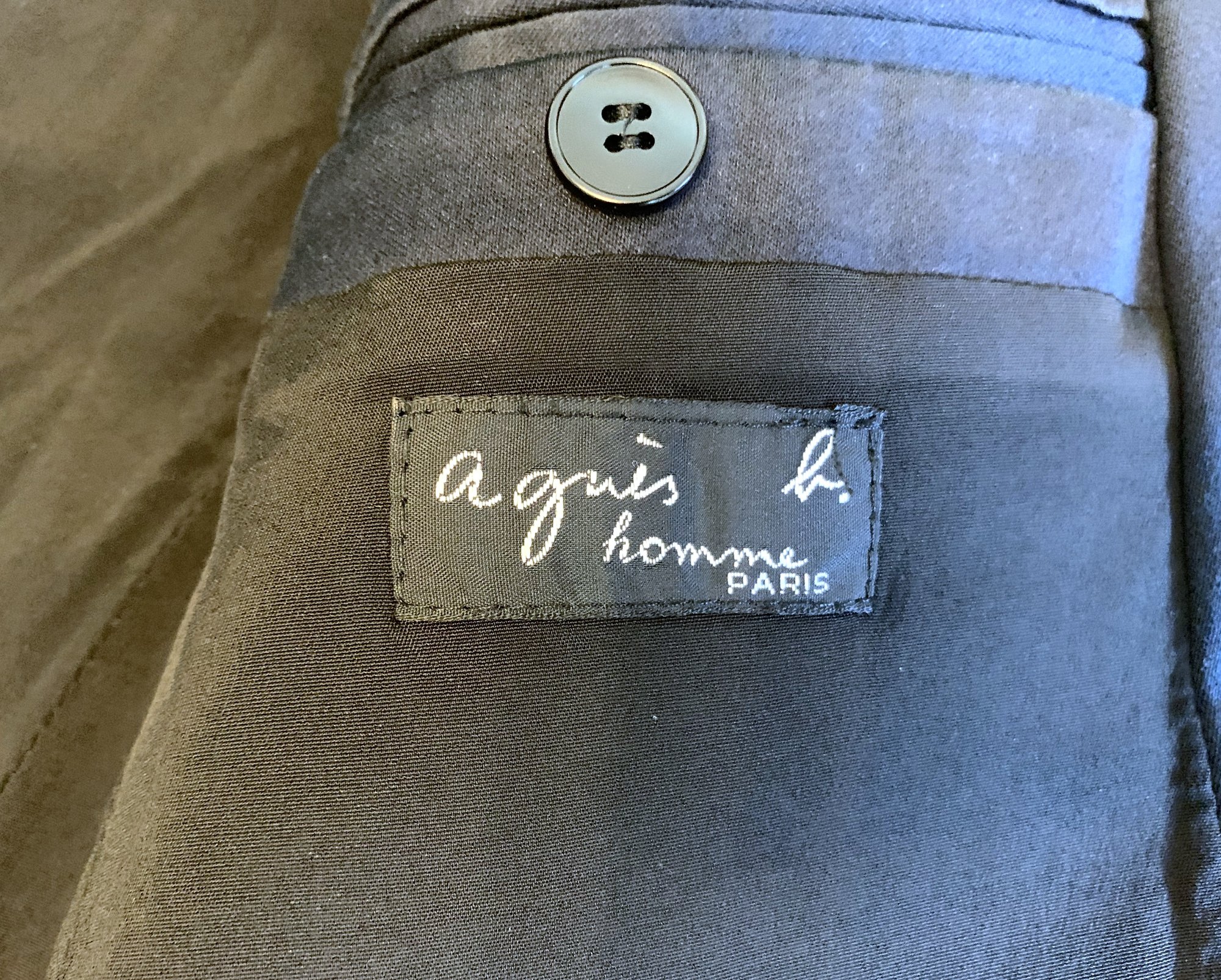Up for sale here is an excellent piece from the Agnes B label. Long well-regarded in both France and Japan, Agnes B has held a cult following most other places I believe. She’s been at it since the mid 1970s, infusing a very French look into her designs. She produces with a very consistent aesthetic, using high quality materials and attention to detail like the best designers. She’s definitely well worth looking checking out in more detail if you’re not super familiar with her.