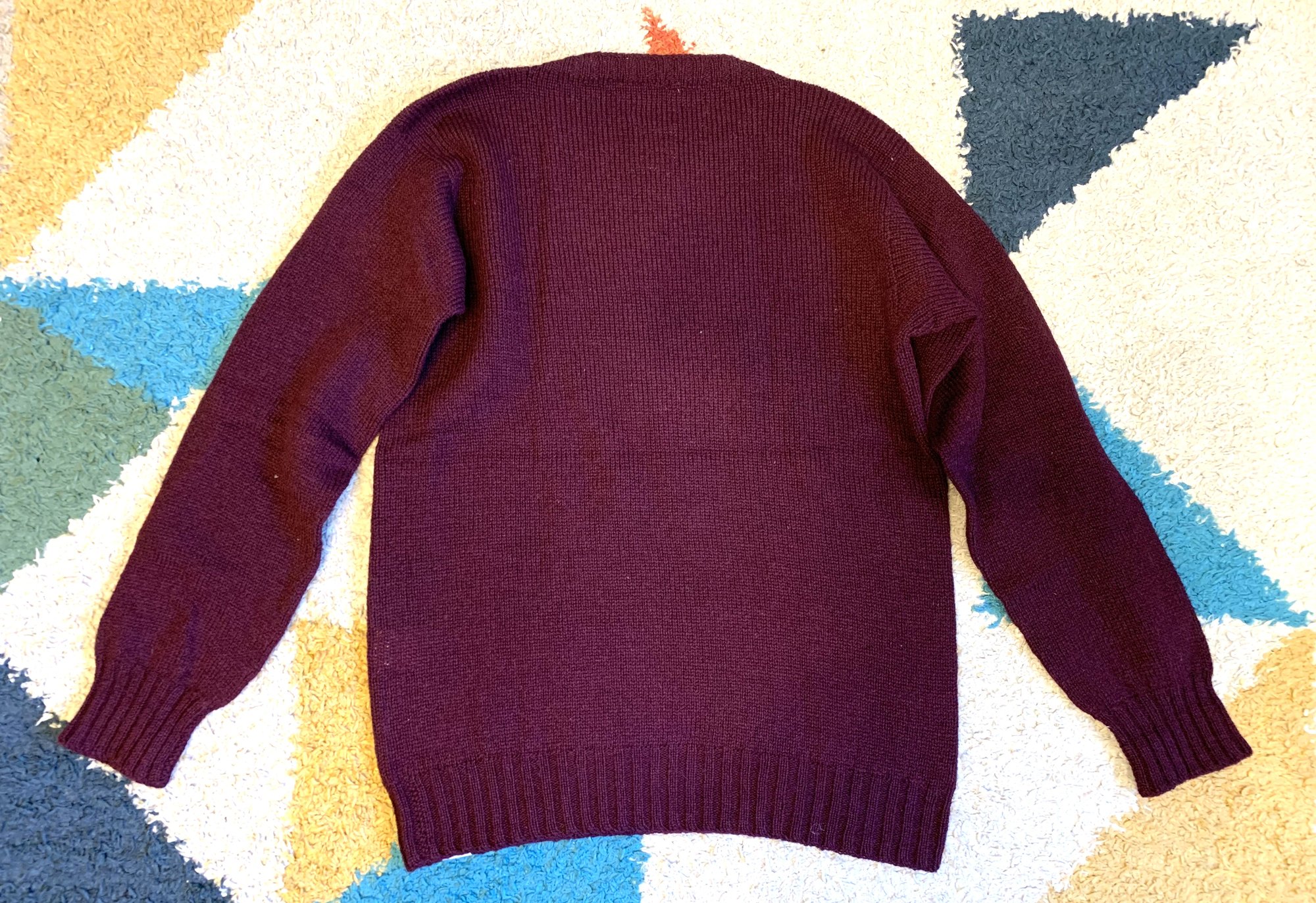 So in this case we have a pretty unique piece, done entirely in a burgundy Scottish wool. This definitely references more traditional British (more specifically Scottish) knits, like Inverallan or Jameson for example. The Scottish knitting tradition goes very far back, where they definitely had the need for insulating, functional garments that can help keep the wind and rain out. One of the unique properties of Scottish wool in my experience is that they’re much better at providing insulation compared to other types of wool. I don’t know what it is exactly, but it probably has something to do with the sheep used and the kinds of hair they grow, but Scottish wool is seriously one of the warmest out there, often justifying the premium pricing.