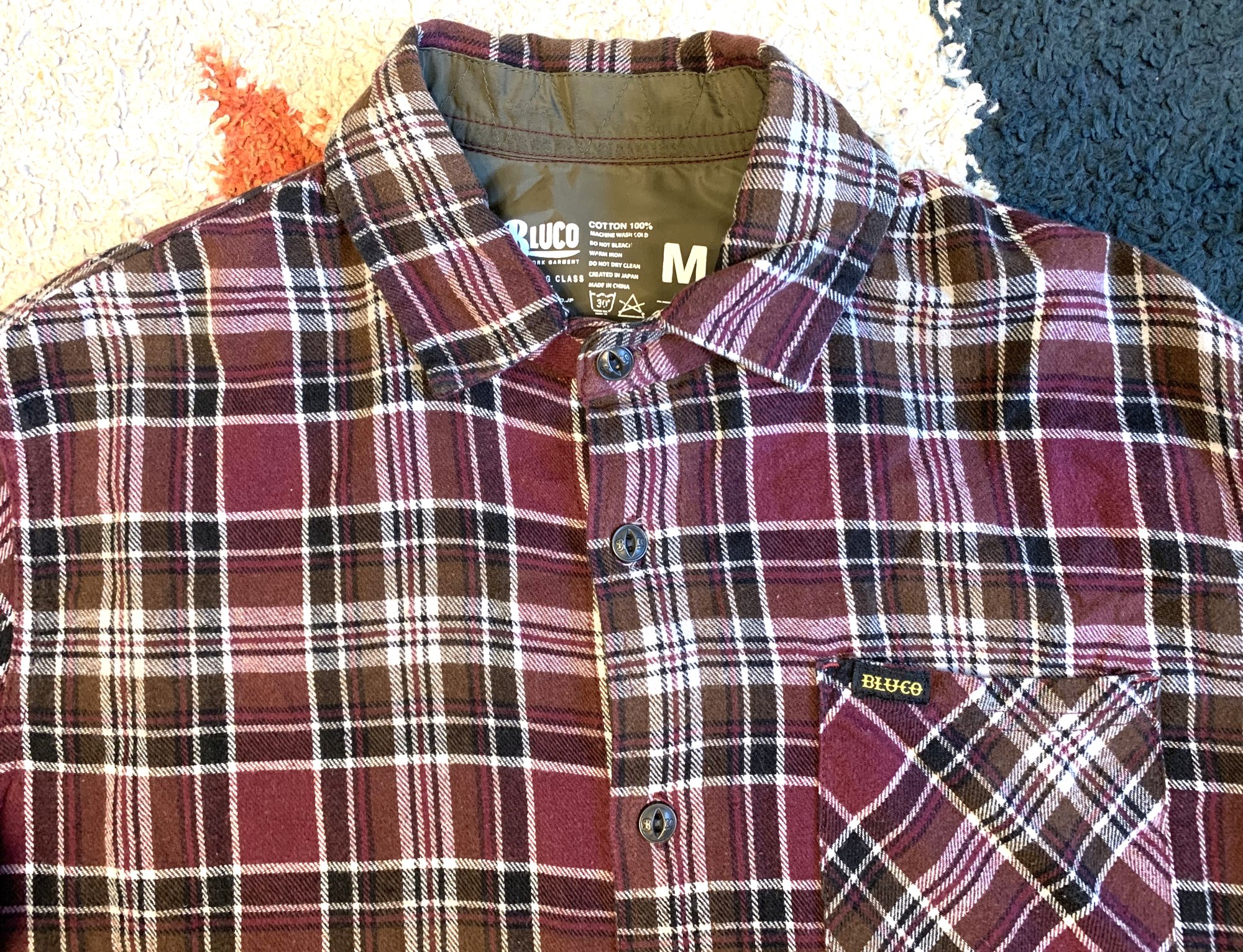 For sale here is a flannel shirt from the Bluco Work Garment label. Bluco is a Japanese label, heavily inspired by classic Americana and workwear. They make a lot of casual and workwear silhouettes, elevating the design and quality considerably in the process. Like the best workwear, everything is built heavy, tough and made to take a beating.
