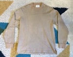 This is a long sleeved mock neck silhouette in brown. Mock neck here refers to the neck construction - it has a half roll, compared to the full roll of a turtleneck. Fabric is a medium weight, and with the mock neck it will keep your neck a bit warmer and makes for a nice contrast. Fit not quite as relaxed as some Blurhms, more straightforward, although this is still a very comfortable, effortless piece.