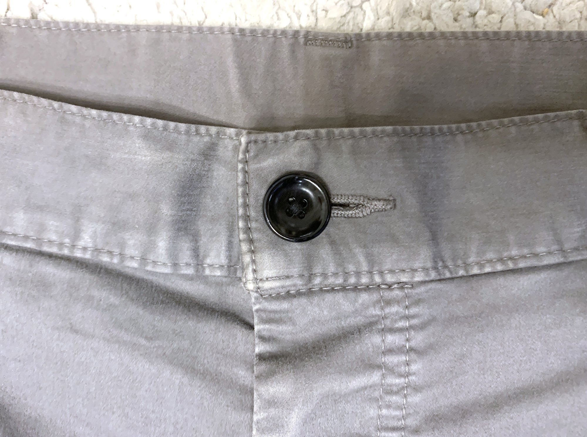 Garment dyeing is when a garment is fully constructed and then dyed, rather than dyeing the fabric first and then making the clothing. It is actually a more time consuming and expensive process, but one that also produces a much greater depth of color that is intentionally a bit uneven and with some nice irregularity to it. These pants have similarly been garment dyed a pleasantly uneven shade of gray.