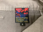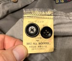 Other details include metal button closure on the fly, complimentary gray pockets, and a unique rear seat construction. Fit is somewhat tapered with a larger pleated top block that slims down toward the ankles. Current iterations of pants by Bru na Boinne retail at about $250 to $300 in Japan but get it here much more reasonably.
