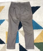Size is labeled a 2, fitting a 33” waist. I measure the waist at 33” / 86cm, inseam at 29” / 74cm, rise at 11” / 29cm and leg opening at 7” / 18cm. The pants come in lightly used, generally good shape. Just one issue to note: there is a small stain on the rear right side (pictured). Otherwise no holes, tears or stains. Made in Japan.