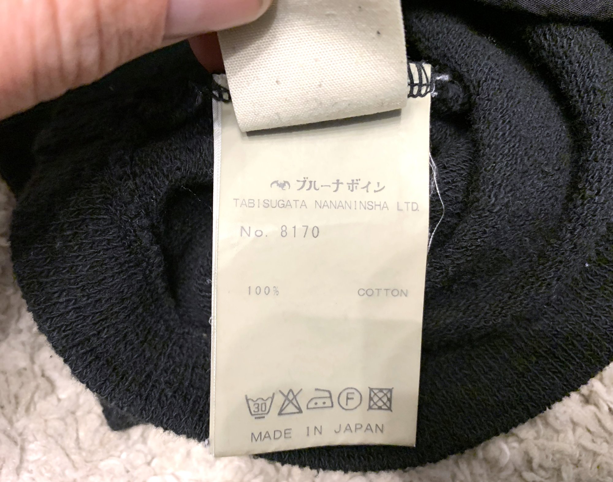 Size is labeled a medium and fits true. I measure the chest at 21” / 53cm, shoulders at 19” / 48cm, length at 28” / 71cm and sleeves at 26” / 67cm. The sweater comes in lightly used, very good shape with no holes, tears or stains. Made in Japan.