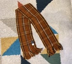 This is a pretty standard scarf size. I measure width at 61.5” / 157cm including the tassels, 54” / 138cm without the tassels, and the height at 8” / 20cm. The scarf comes in lightly used, very good shape with no holes, tears or stains. Made in Mexico.
