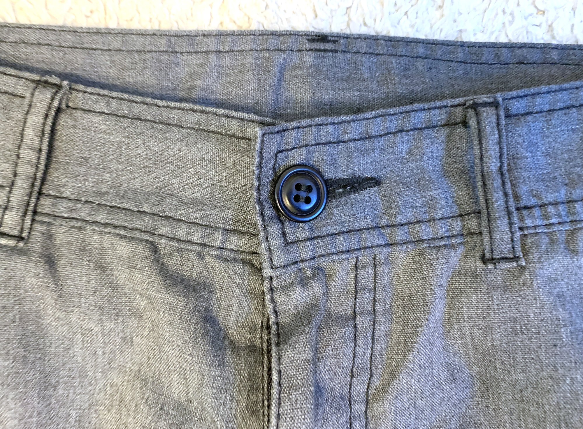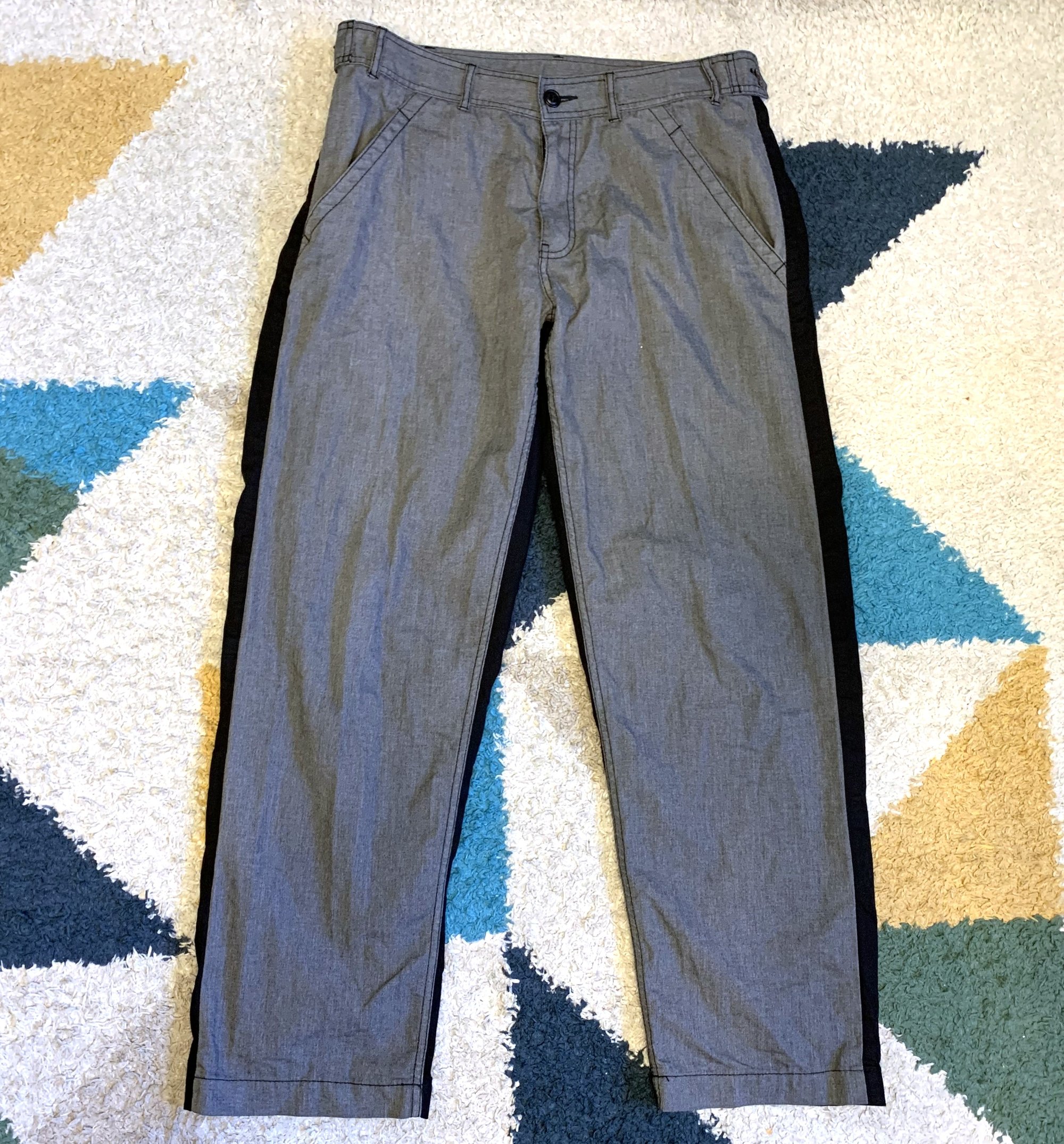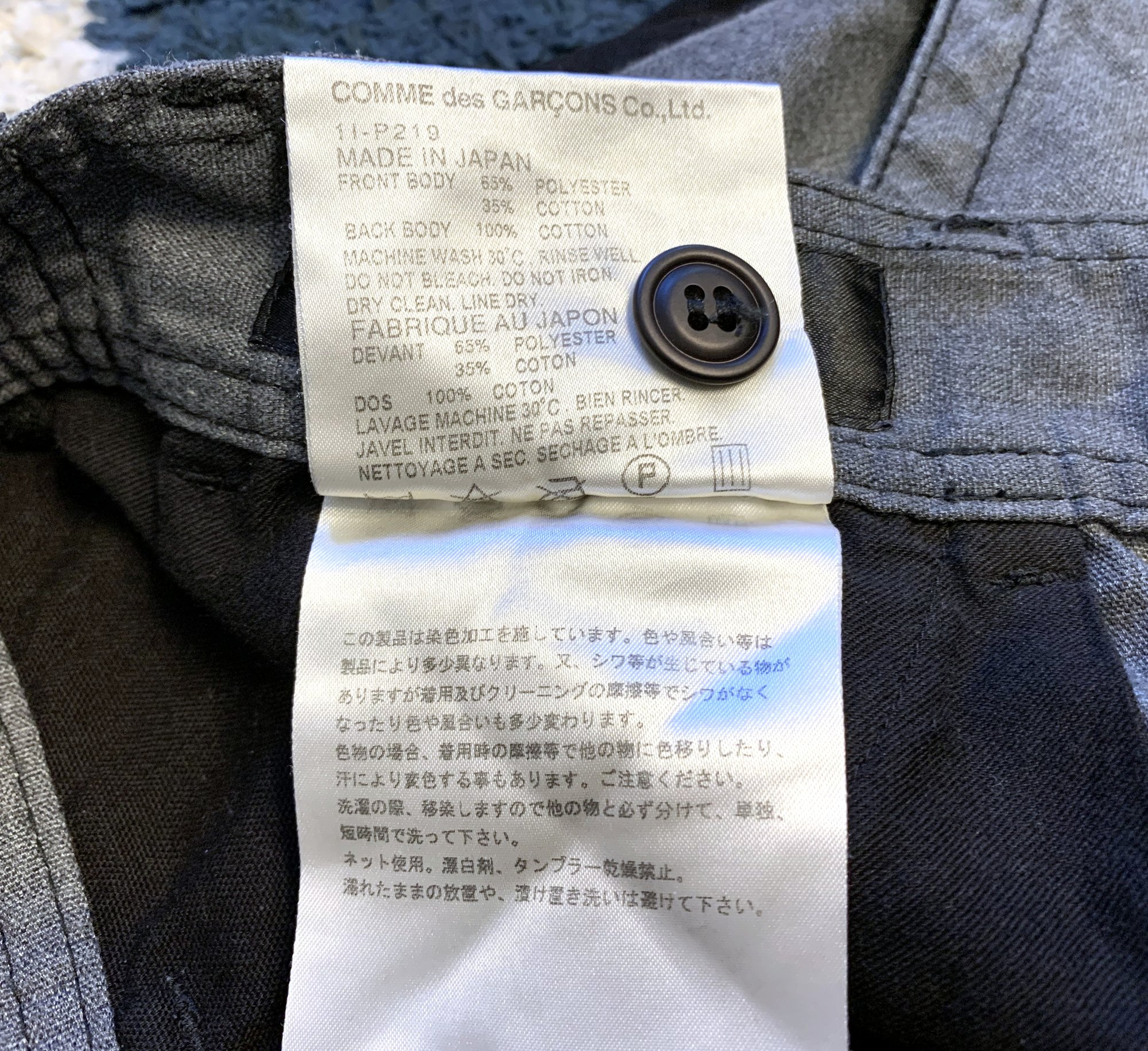 All that said, what you have here is an interesting take on the classic pair of pants, done with CDG’s typical avant-garde approach. Silhouette is pretty straightforward, a somewhat loose fitting chino silhouette. The twist comes with the coloring, where the front of the pants and waistband are done in gray while the rear is a solid black. It is a simple yet effective contrast, something you definitely do not encounter from other labels. It is also worth noting that the gray fabric is a 65% polyester / 35% cotton blend, while the rear black fabric is 100% cotton.