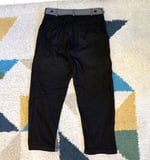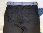 Available here is a pair of pants from Comme Des Garcons’ Black line. From what I understand, the black line re-purposes some of the classic designs from Comme Des Garcons’ long history, updating the fit and putting pretty much everything in black (hence the name). Like most CDG, perhaps with the exception of the Play line, availability of these pieces is pretty limited. Outside of Japan you can only get them at the few CDG select shops like Dover Street Market or CDG’s other boutiques. Even in Japan the black line is often separate from the CDG mainline, Homme and Junya Watanabe, and relatively less common.