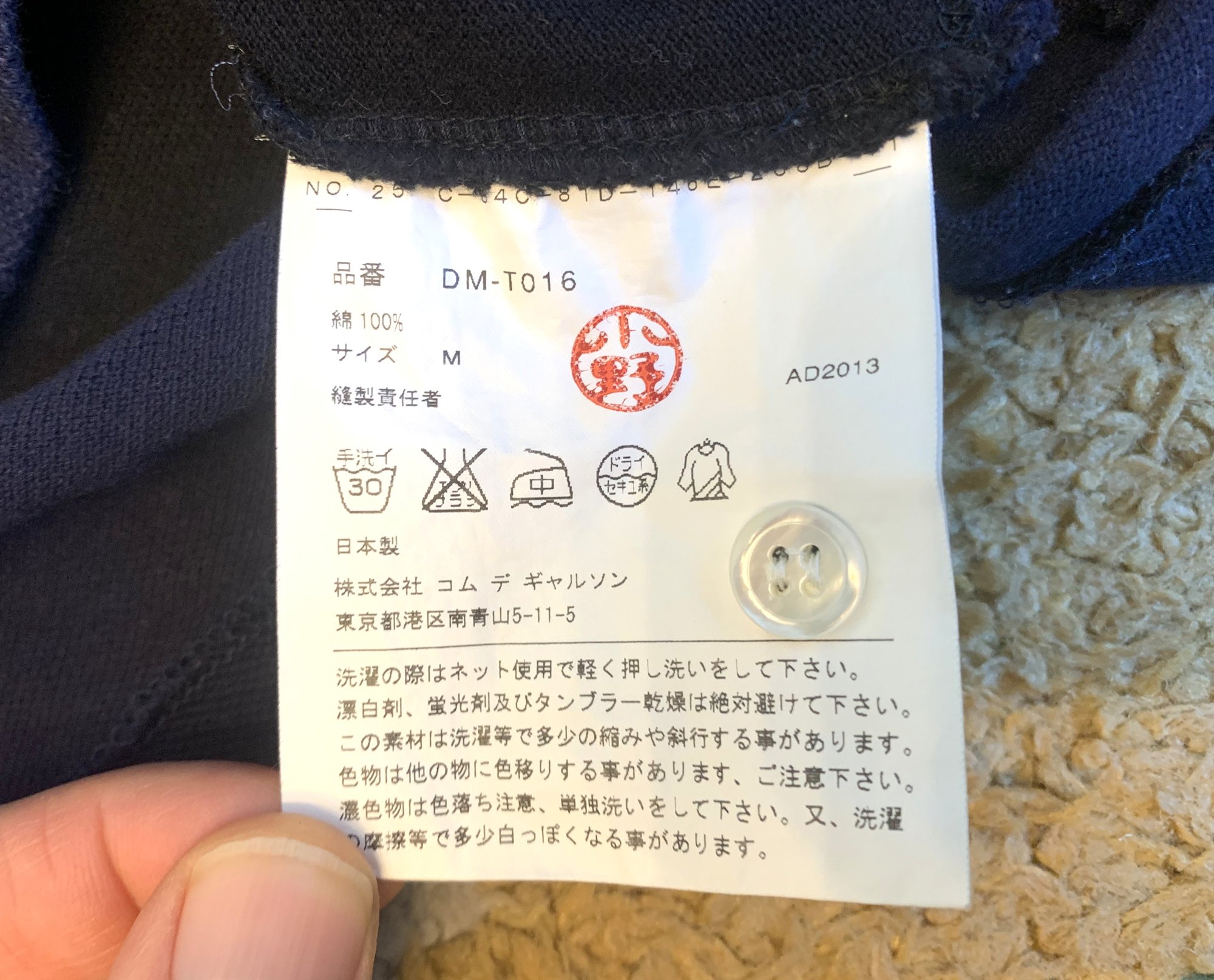 Size is labeled a medium and fits true. I measure the chest at 19.5” / 50cm, shoulders at 18” / 46cm and length at 26” / 66cm. The shirt comes in lightly used, very good shape with no holes, tears or stains. Made in Japan.