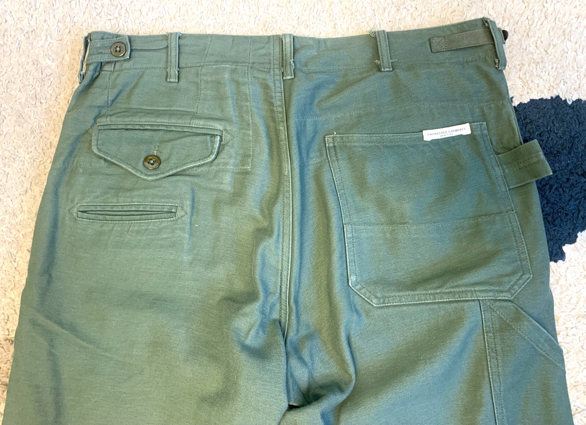 EG and Beams Plus have released a few collaborative pieces over the years. This model is called the Glassfield pants, coming in a military-inspired silhouette with some interesting tweaks. Fabric here is 100% cotton in a military green in a standard pants weight, neither too light nor too heavy. The design of the pants may look uniform on first glance but they actually draw from several different sources: the front right side borrows from classic chinos, the front left from fatigue pants, while the rear left draws from outdoor pants and the rear right from painter pants. It all combines to make for something completely unique.