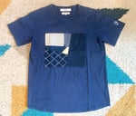Size is labeled a 2 and fits a medium well. I measure the chest at 21” / 53cm, shoulders at 18” / 46cm and length at 28.5” / 72cm. The shirt comes in lightly used, very good shape with no holes, tears or stains. Made in Japan.