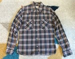 For sale here is a snap button western style shirt from the Flat Head. The Flat Head are one of the perhaps better known Japanese “repro” brands out there. That is, they specialize in reproductions of classic American vintage and workwear. But like the best of the repro labels, they add quite a bit. While the designs may be timeless, the detailing and quality are in another class. That’s where the Flat Head excels.