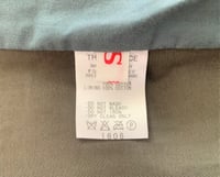 Here we have a blazer silhouette done in a vintage heavy cotton twill fabric. Fabric seems to reference 1960s and 70s design with a some kind of military inspiration behind it. The front portion of the jacket is also lined in a different vintage cotton in green. Silhouette has a nice twist to it, where the cuffs come together more like a shirt than a traditional jacket or blazer. Tailoring is super strong here, with some very cool vintage buttons added for good measure.