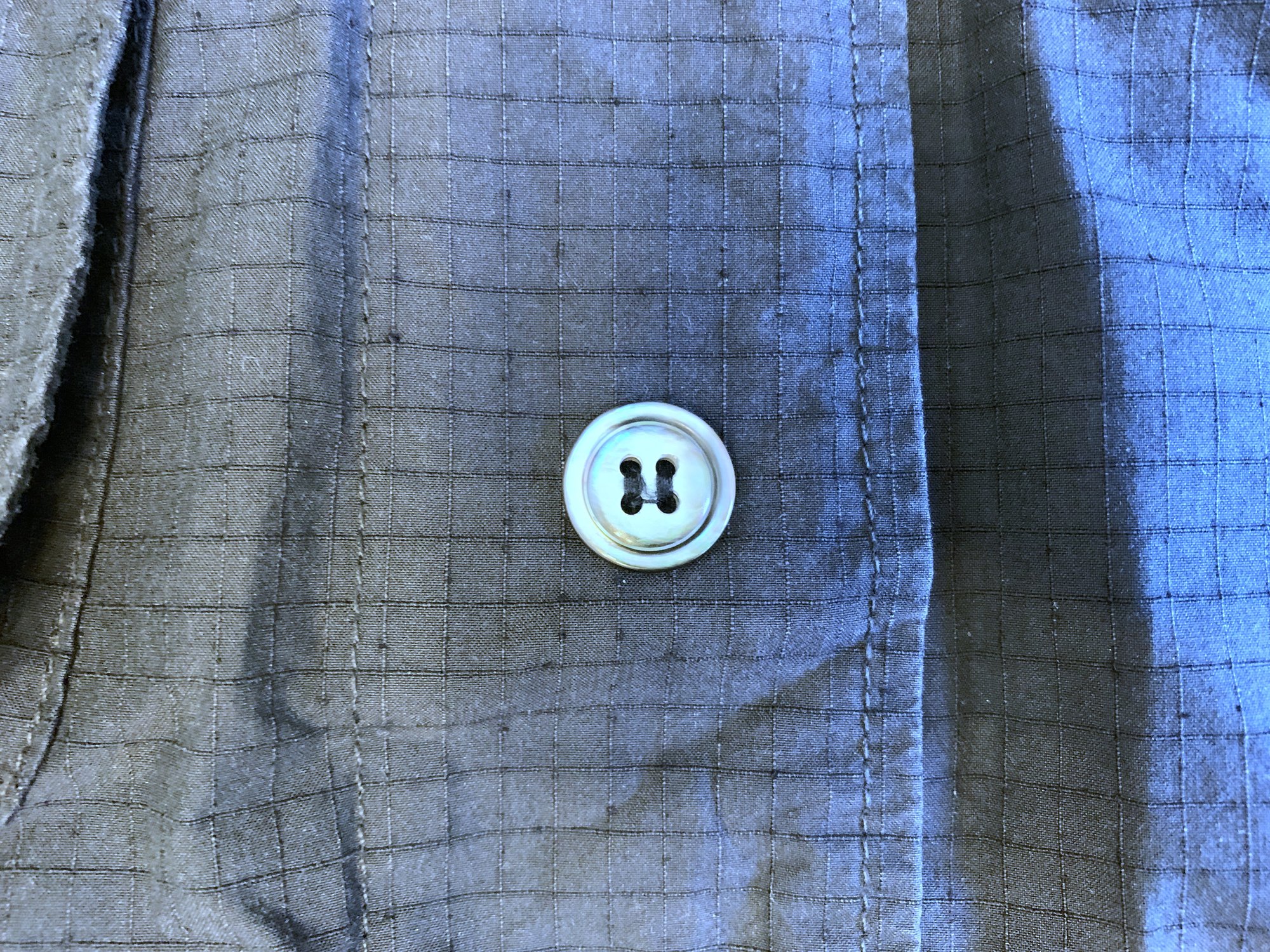 This is a pretty unique piece here from FSC, a military-style safari jacket that has been elevated with some really excellent materials. The main fabric is an 86% cotton, 14% silk blend in a ripstop grid pattern. It is pretty unusual to see silk incorporated with a cotton jacket. The silk here gives the fabric a very soft feel, while at the same time increasing its resilience. Silk is noted for its strength as well as its softness, and in this case it should make for a nicely tough piece. The ripstop grid pattern adds further resiliency. Ripstop is essentially densely woven fabric in a grid pattern. The grid helps to stop any abrasions from tearing further, hence the name. It makes for a very strong fabric, actually used by the US military.