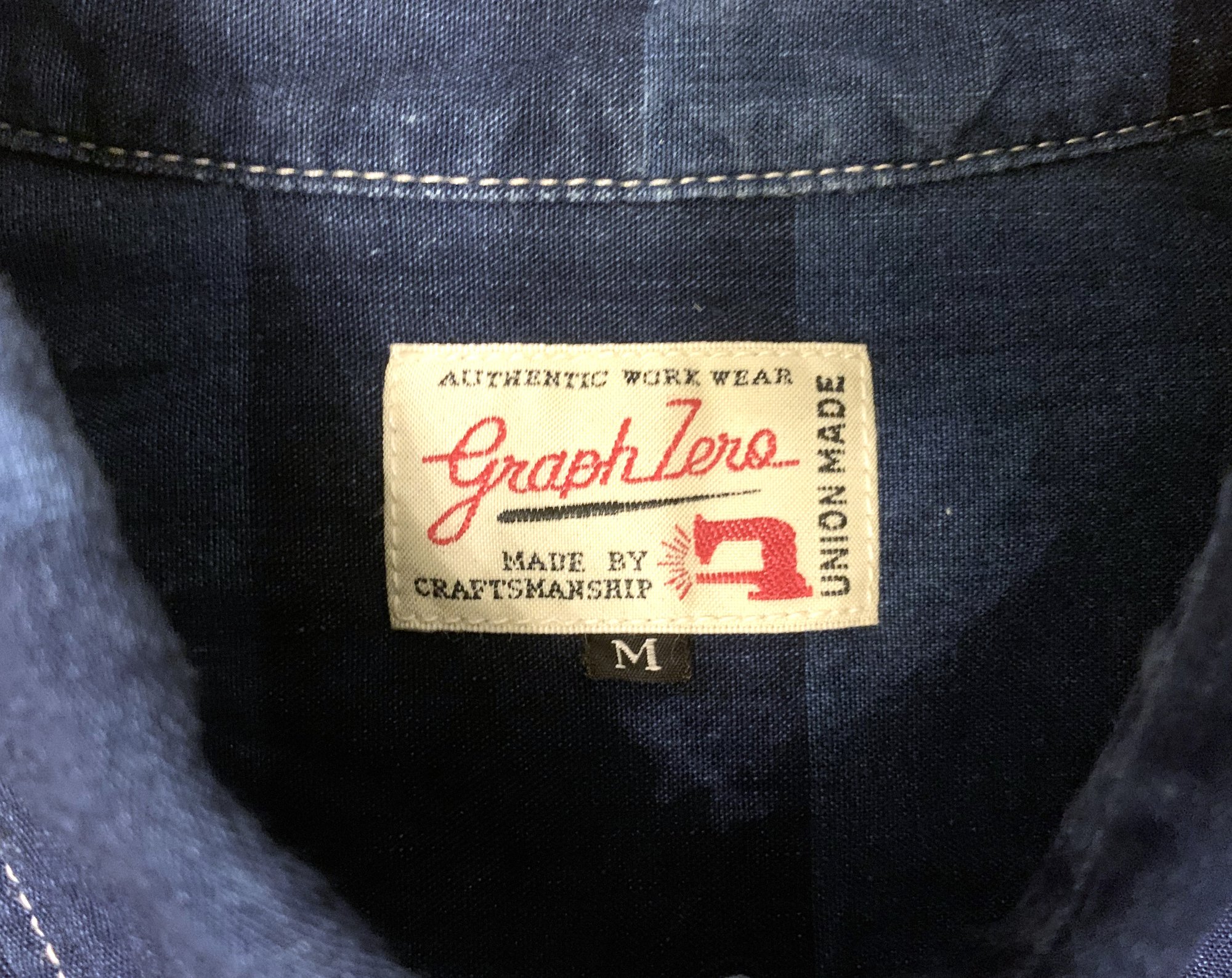 Up for sale here is an indigo dyed shirt from the Graph Zero label. Graph Zero is another one of those strongly vintage inspired Japanese labels located in the Kojima area of central Japan, home to Japan’s denim industry. Graph Zero are somewhat unique in that they have their own factory, and as such are able to gather quite a bit of expertise and keep things pretty vertically integrated. They have been going since 2004 and are still on the smaller side of things, where they only seem to have distribution to a handful of shops in Asia outside of Japan.