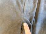 Size is labeled a 2. There is some stretch on the waistband as noted, where unstretched I measure the waist at 32” / 84cm (it should be able to stretch up to about 34”), inseam at 27” / 69cm, rise at 10.5” / 27cm and leg opening at 8” / 20cm. The pants come in used, generally good shape. There is some wear, including an abrasion near the crotch area, a small stain near the left side pocket, and some fading on the knees and rear. Made in Japan.