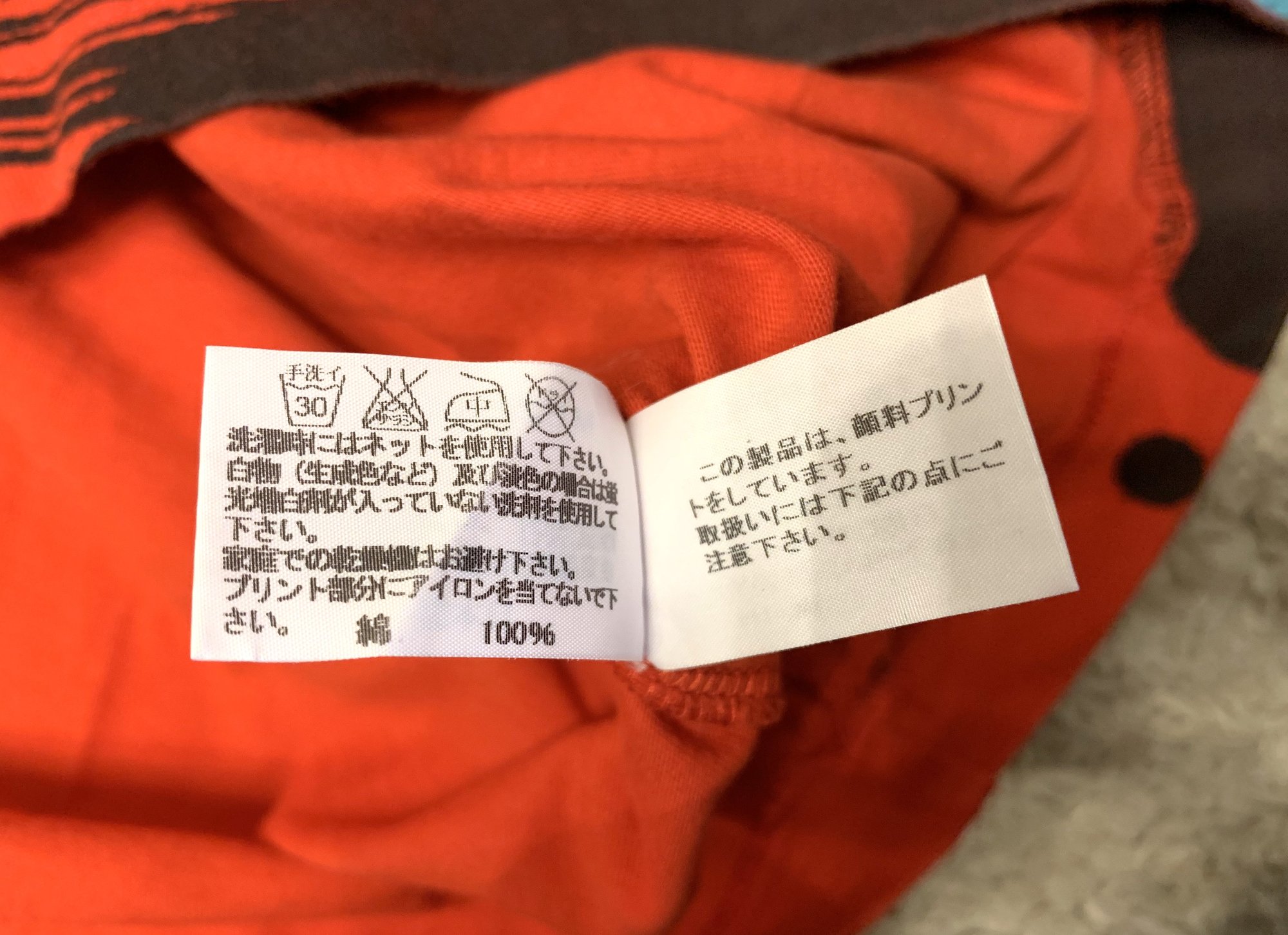 Size is labeled a 2 and fits like a regular medium. I measure the chest at 21” / 54cm, shoulders at approx. 18” / 47cm and length at 25” / 66cm from the base of the neck. The shirt comes in lightly used, very good shape with no holes, tears, stains or obvious signs of wear. Made in Japan.