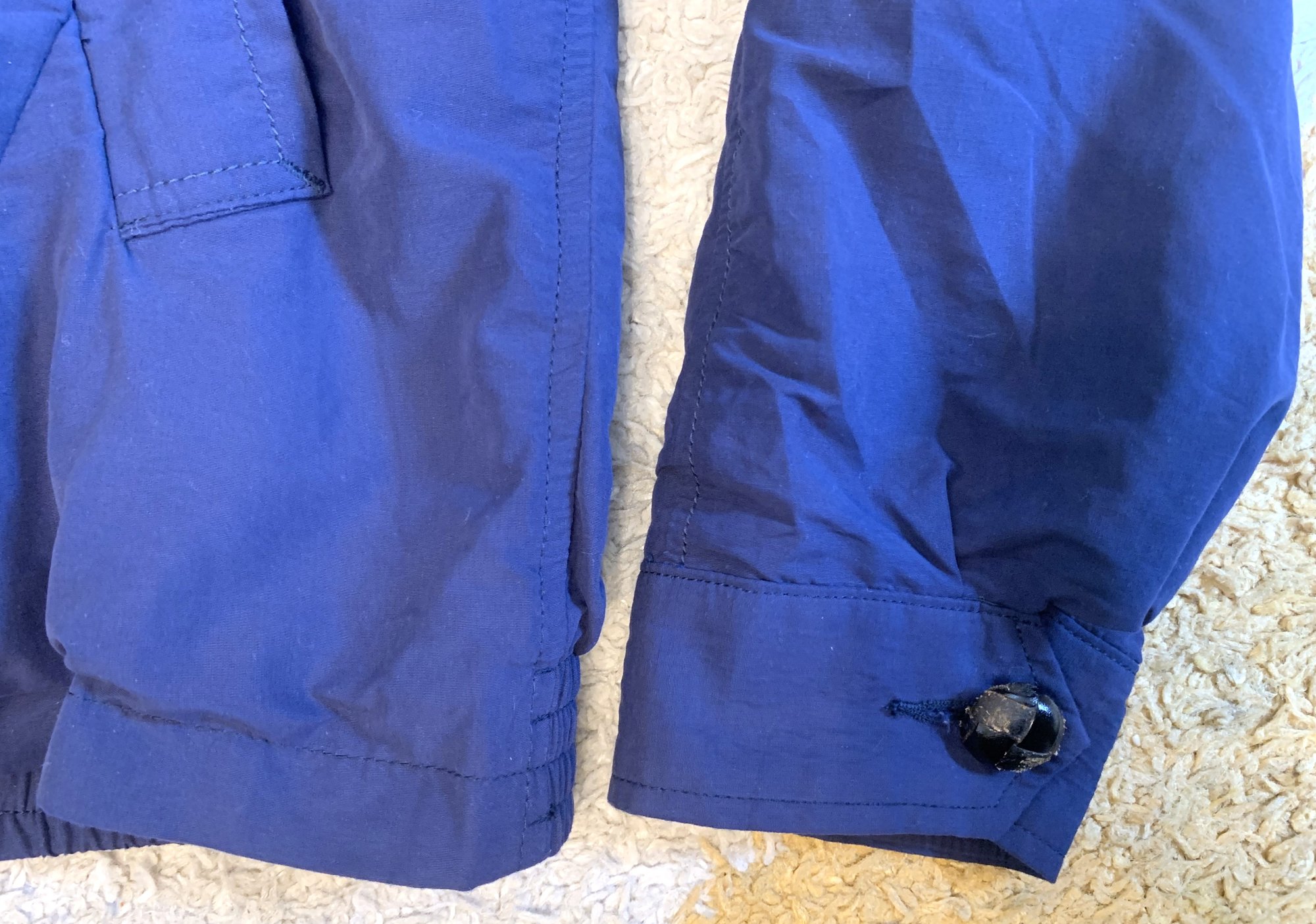 Size is labeled a medium and fits somewhat relaxed. I measure the chest at 21.5” / 54cm, shoulders at approx. 18” / 46cm (they are raglan and hard to get exactly right), length at 26.5” / 65cm and sleeves at approx. 24” / 62cm from the shoulder. The jacket comes in lightly used, very good shape with no holes, tears or stains. Made in Japan.