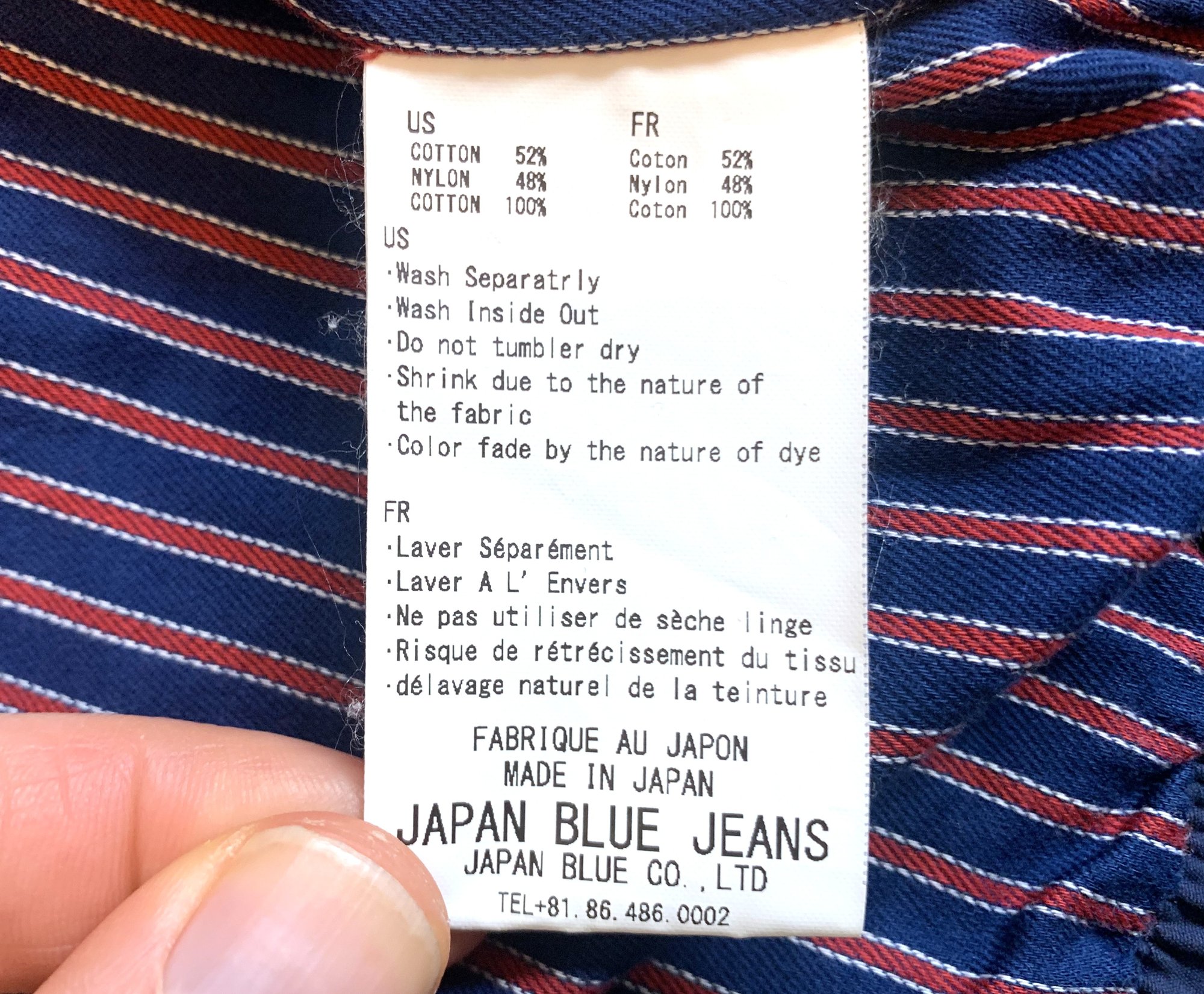 For sale here is a jacket the Japan Blue Jeans label. Japan Blue is one of the lines manufactured by Rampuya, the same company that does the Momotaro label. Both labels are very strongly jeans and indigo oriented, producing exclusively in the Kojima area of Japan, although the Momotaro label is probably more widely known and releases a fuller range. Japan Blue focuses pretty strongly on jeans and denim jackets, but the same high quality production standards are still very much there, as are the really detailed and unique fabrics.