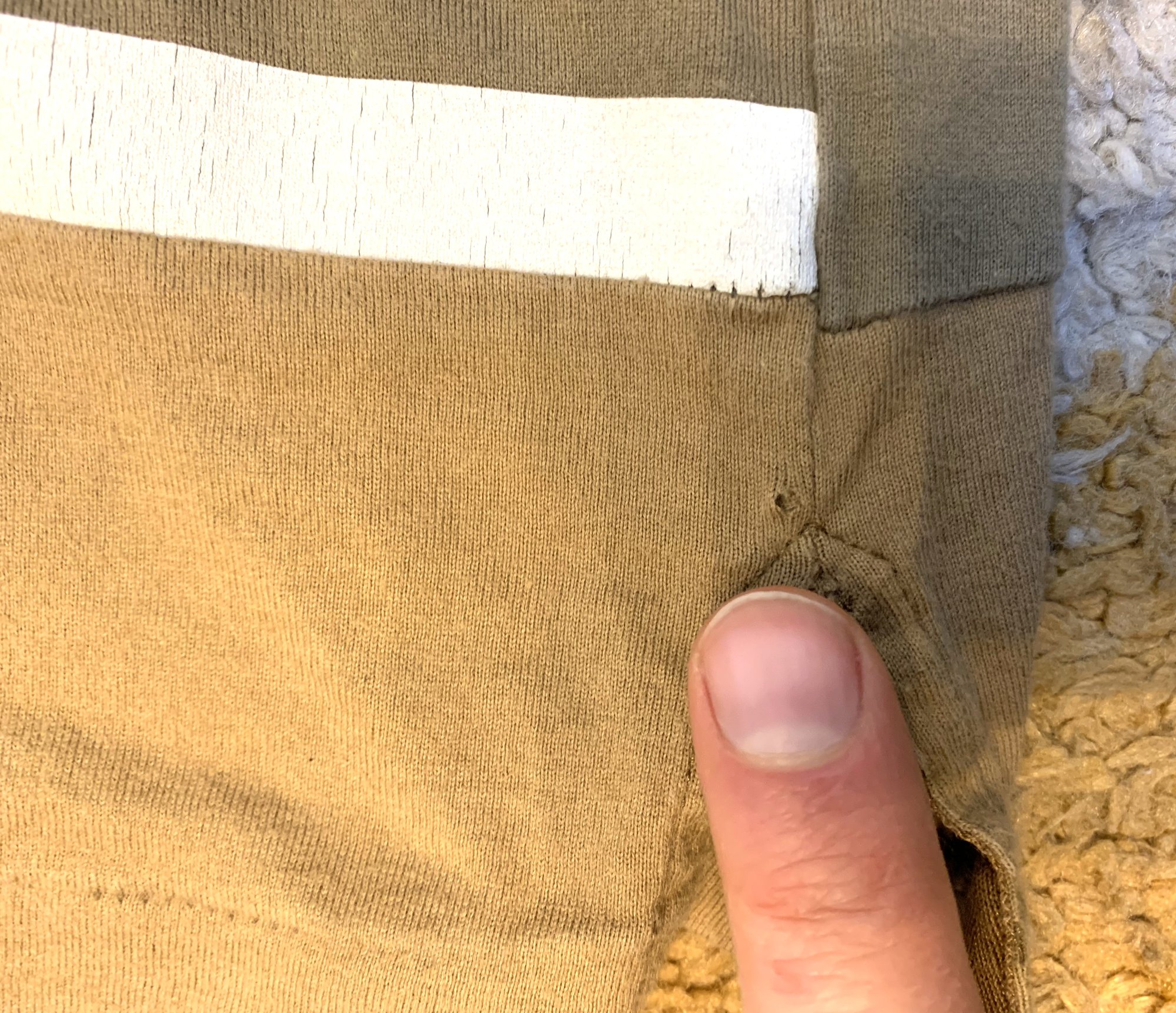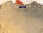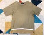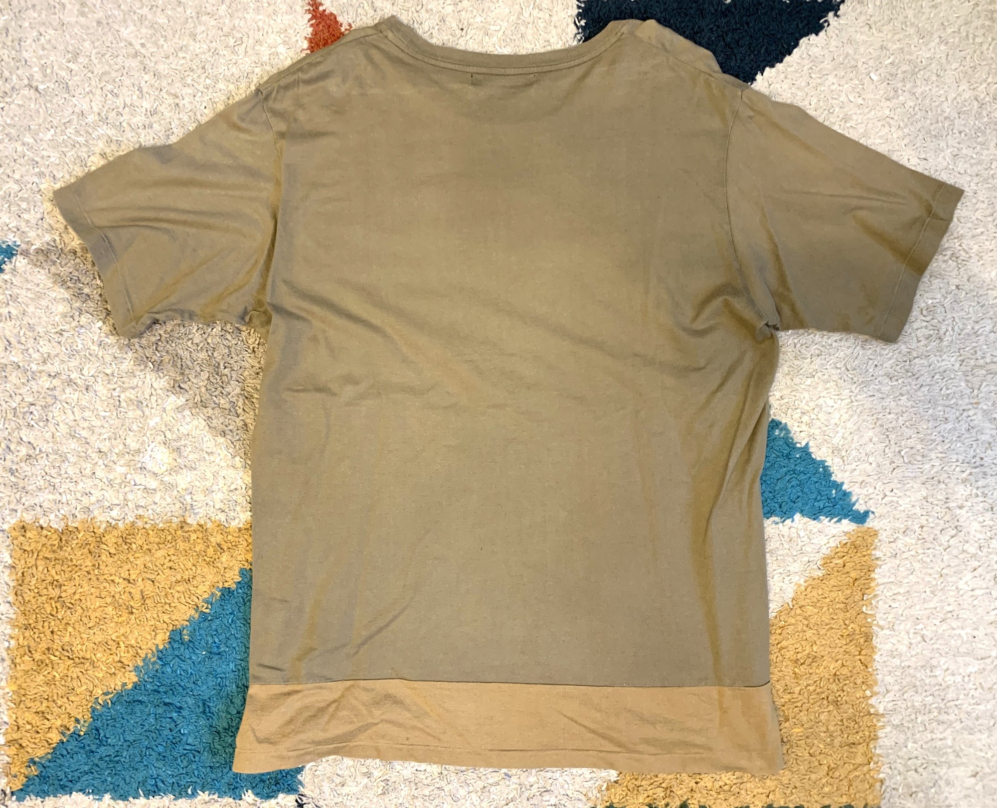 Here we have a somewhat straightforward t-shirt design. The main body is a sort of olive/khaki cotton, while the front has a white silk screened line and another lighter shaded fabric at the bottom. It is a subtle sort of patchwork, executed at a very high level of quality as you might expect from Undercover. Undercover tailoring is always very strong and highly underrated, this shirt being no exception.