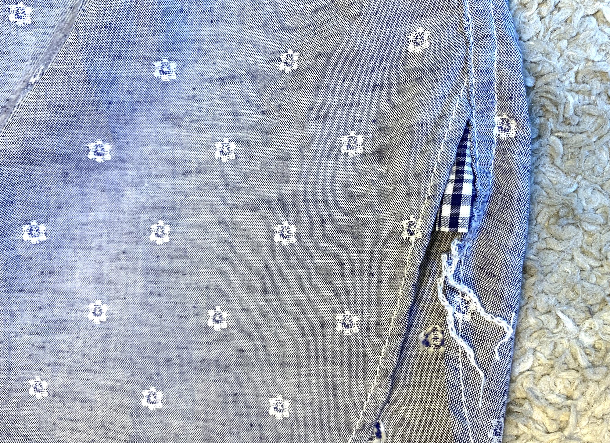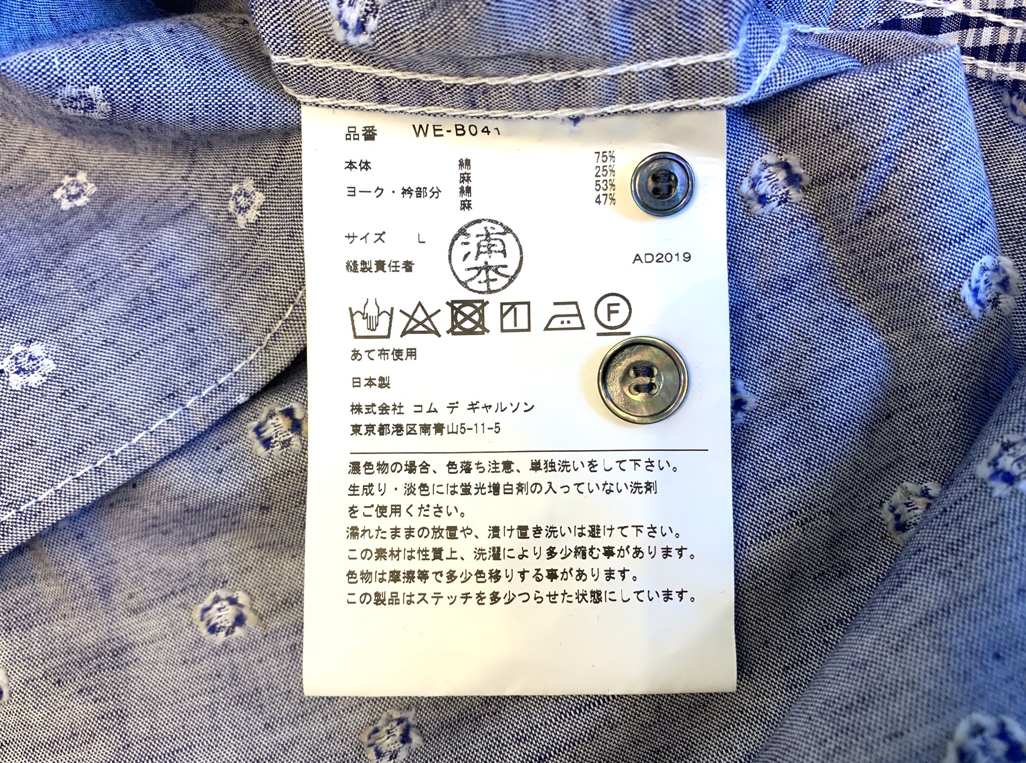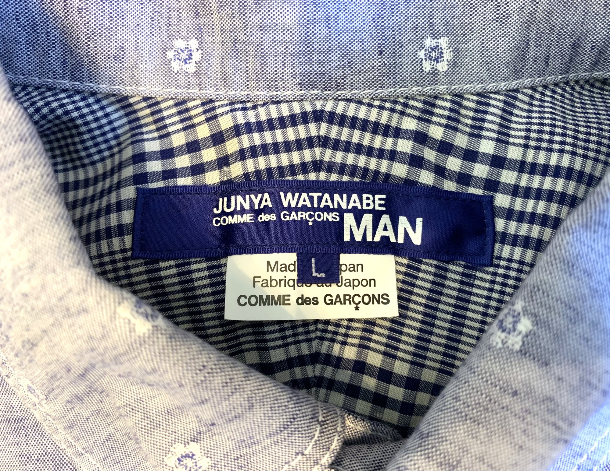 For sale here is a button down shirt from Junya Watanabe, a part of the Comme Des Garcons universe of labels and arguably one of the more well-known. This shirt comes from the spring-summer 2019 collection and is a good example of Junya’s current direction, where he often reinterprets traditional workwear clothing in a patchwork sort of fashion.