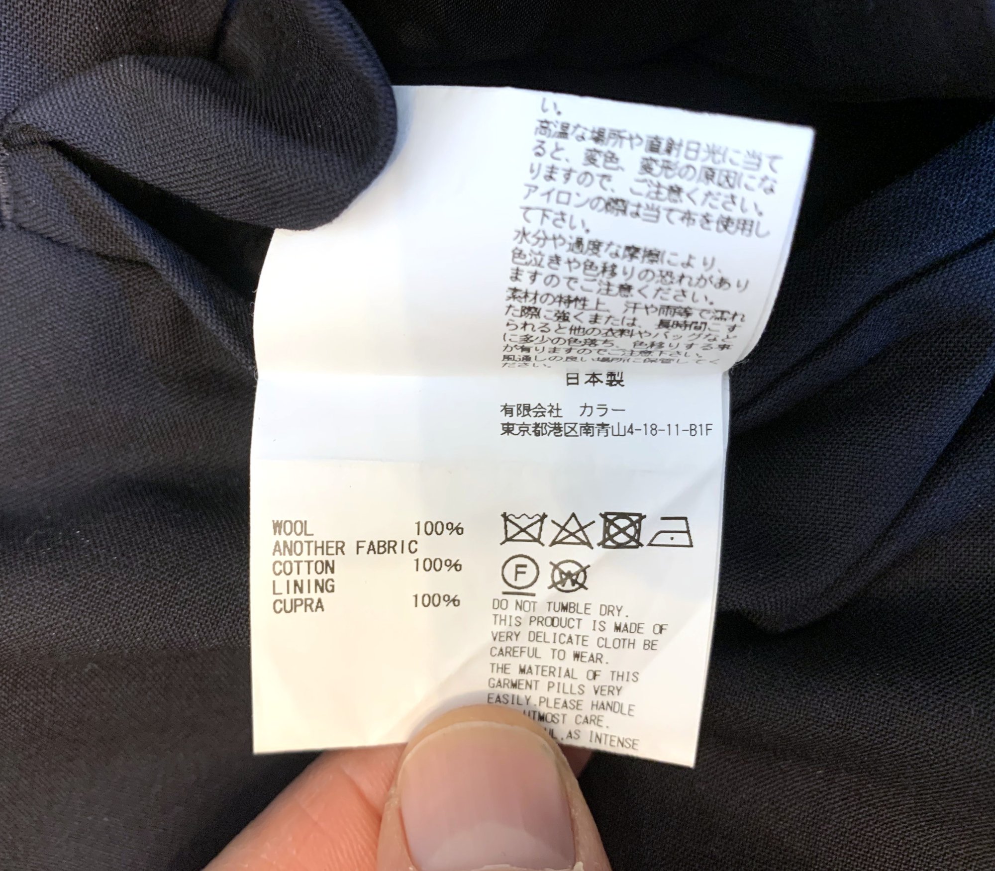 For sale here is a pair of pants from Japan’s Kolor label. Kolor is another one of those brands that circles the Comme des Garcons universe. Original designer Junichi Abe worked for several major Japanese labels before founding Kolor in 2005 (he recently stepped down in 2025) and his wife Chitose Abe runs the Sacai label. With Kolor their emphasis is a sort of patchwork aesthetic combined with a lot of technical fabrics. They like to combine a variety of fabrics together, often leaving them partly deconstructed.
