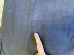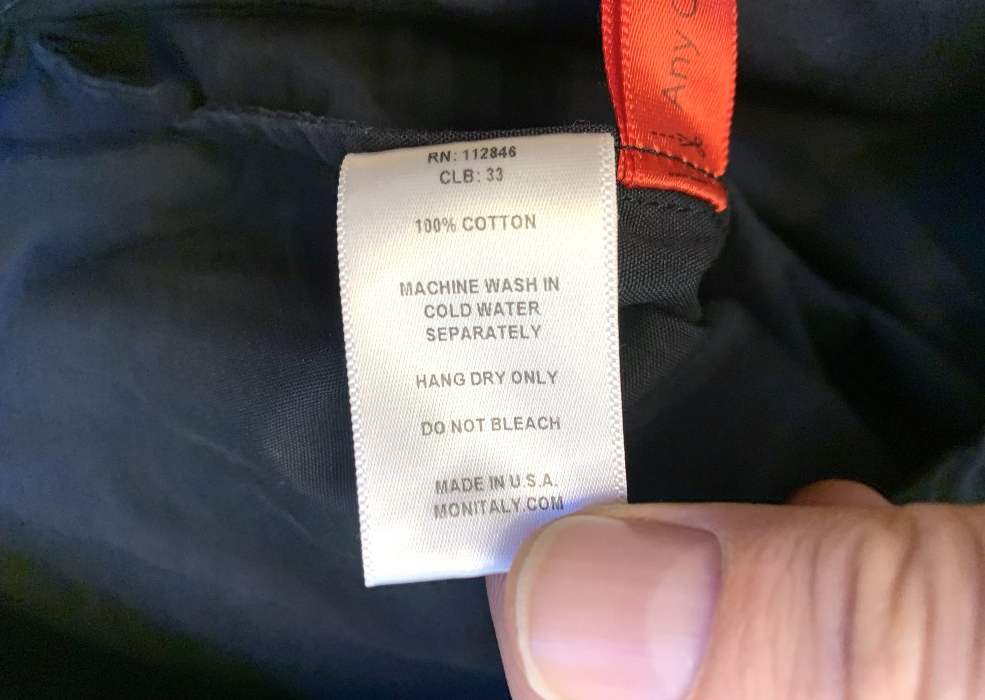 Size is labeled a small, fitting large. This is one of Monitaly’s oversized pieces and could work well for most sizes. I measure the chest at 23” / 59cm, shoulders at 19” / 47cm, and length at 27” / 69cm. The shirt comes in used, generally good shape. There is some wear on the front by the right pocket area but otherwise no holes, tears or stains. Made in USA.