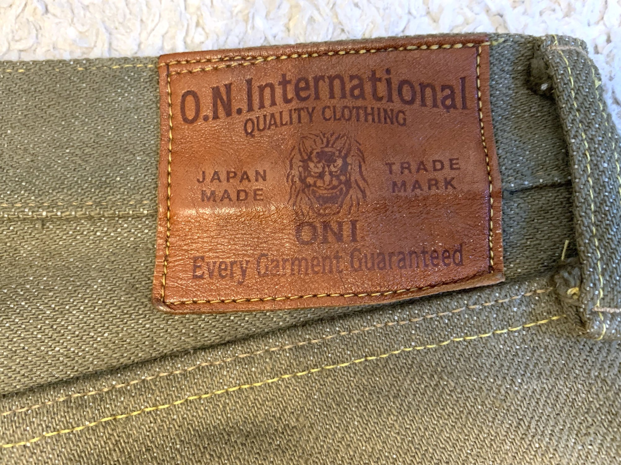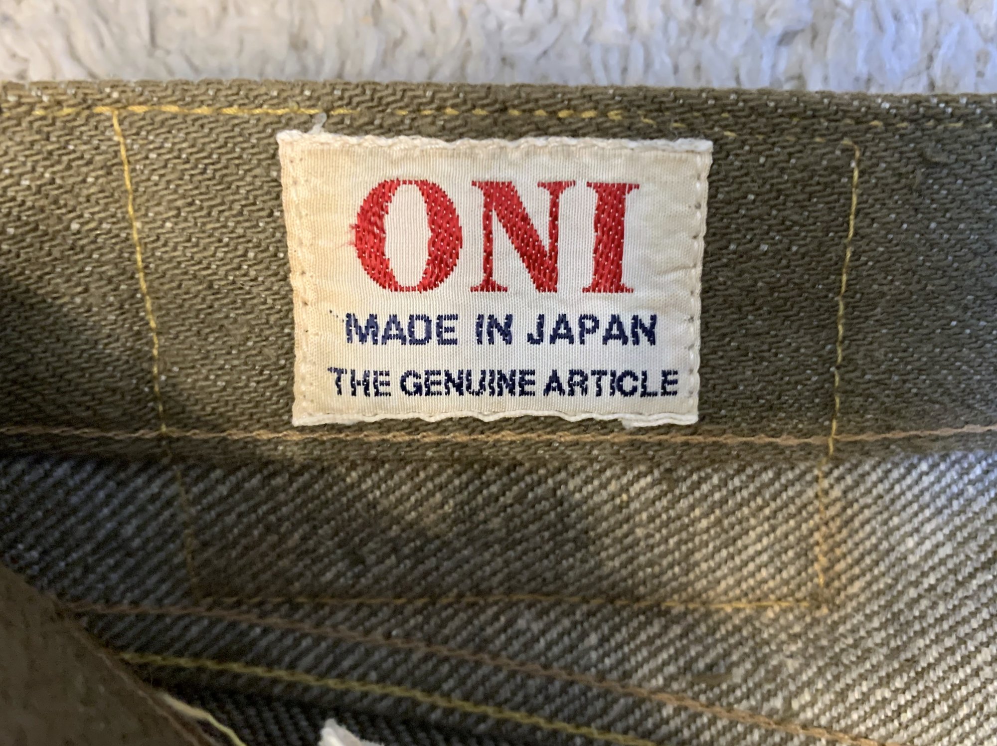 Up for sale here is a pair of pants from the Oni label, one of the smaller Japanese denim specialist labels, although unlike a good number of Japanese brands these guys seem to have fairly decent distribution abroad. They’ve also got a bit more notoriety because of it, but it is very much deserved. Oni doesn’t put out a large range of products, but what they do release is always something special. These guys are very much on the “specialist” side of denim, where all of their pieces are some really unique denims, usually very slubby, highly uneven and with a lot of character. This is often achieved using vintage shuttle looms which allow for much more of a handmade feel.
