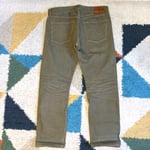 Size is labeled a 34 and fits true. I measure the waist at 34” / 88cm, inseam at 28” / 71cm, rise at 10.5” / 26cm and leg opening at 8” / 20cm. This is a straight leg fit, neither too loose nor too skinny but nicely straddling the line in between. The pants come in lightly used, very good shape with no holes, tears or stains. Made in Japan.