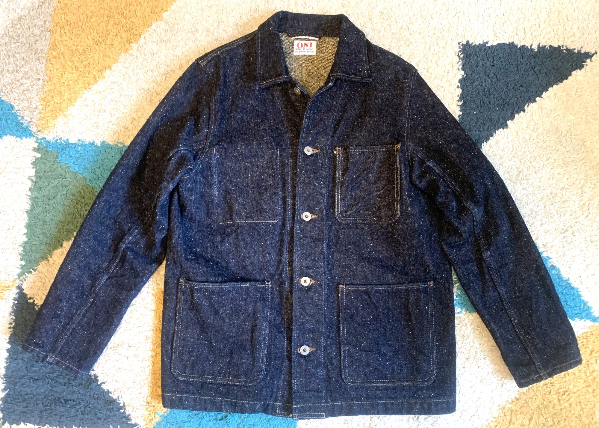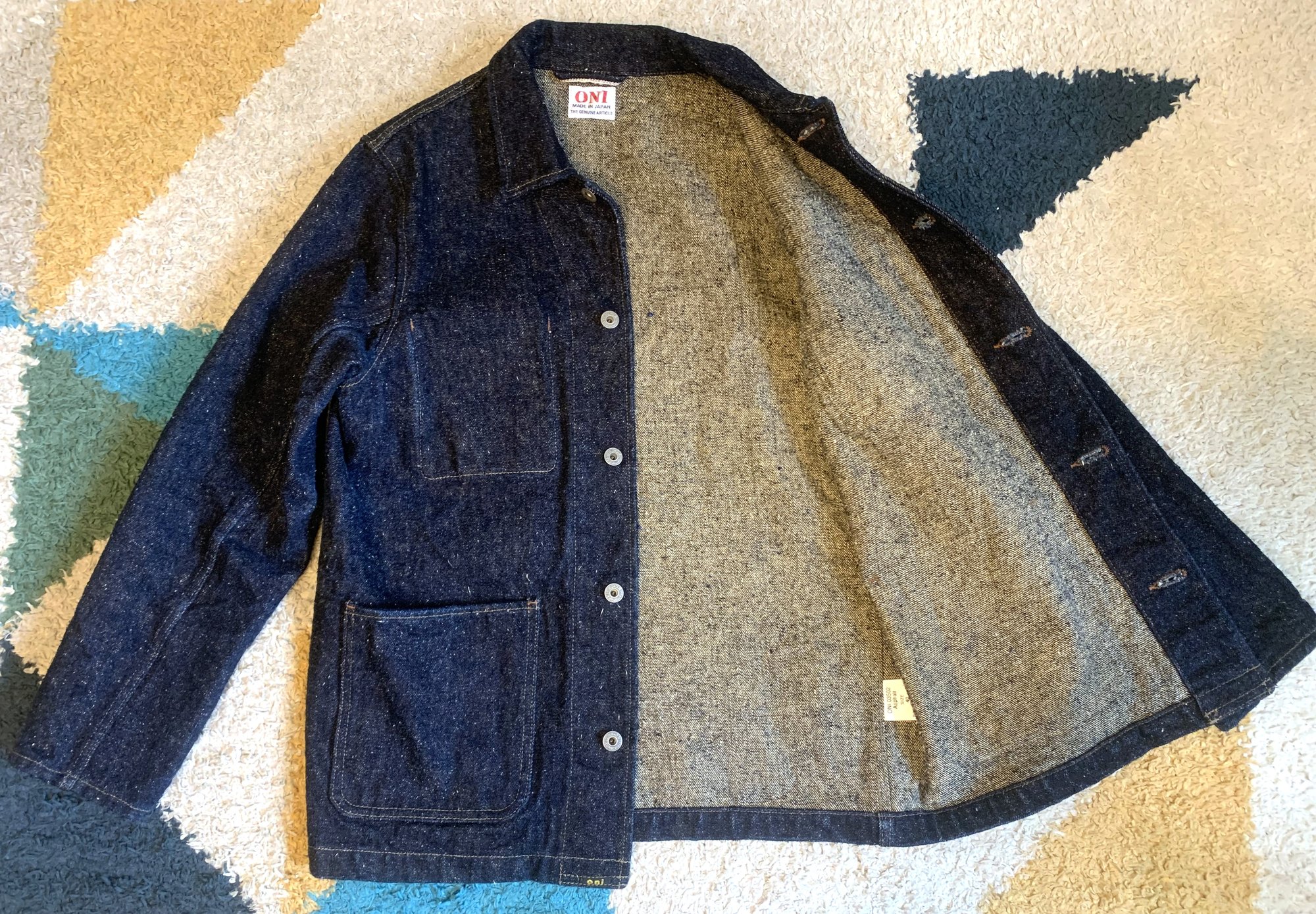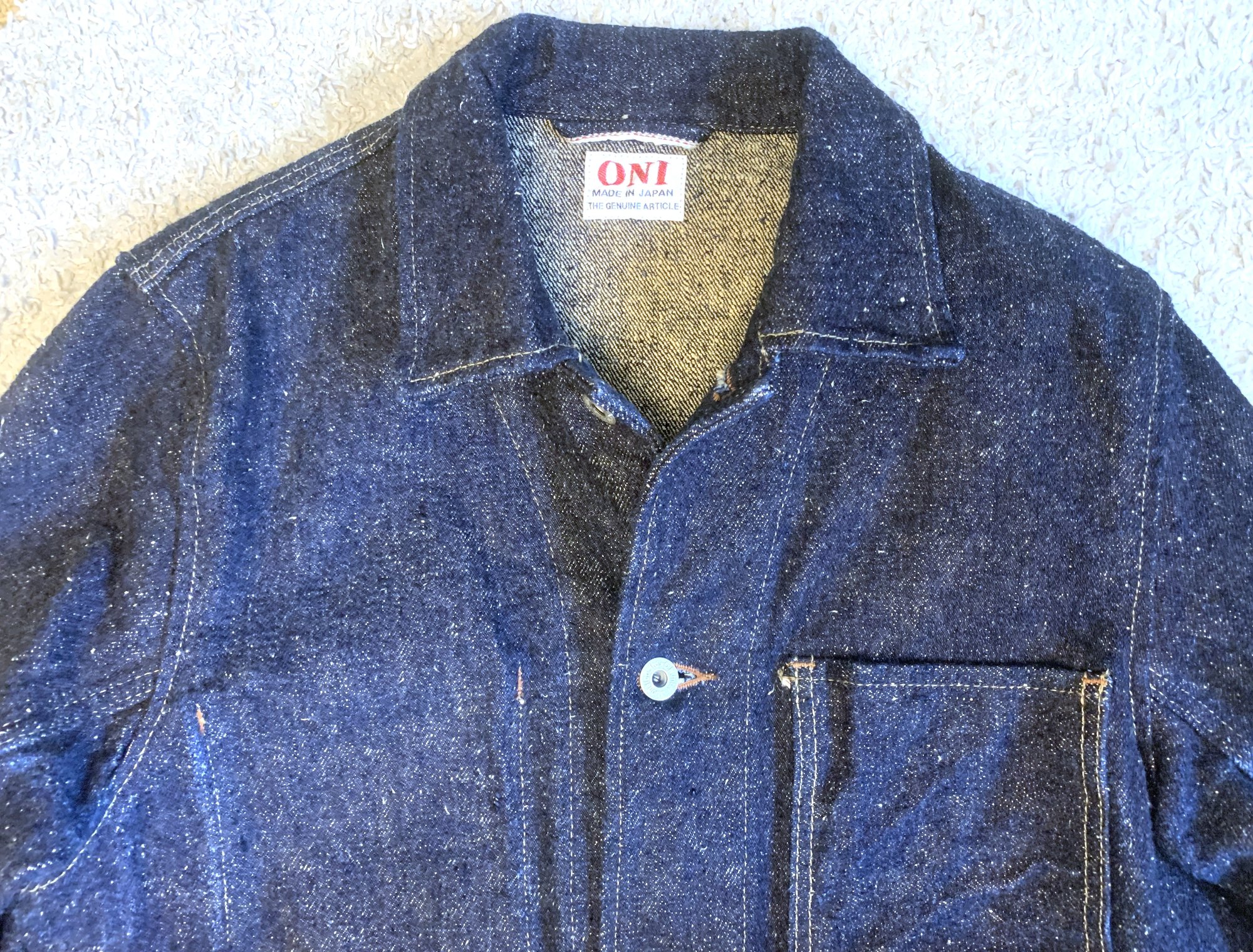 Up for sale here is a jacket from the Oni label, one of the smaller Japanese denim specialist labels, although unlike a good number of Japanese brands these guys seem to have fairly decent distribution abroad. They’ve also got a bit more notoriety because of it, but it is very much deserved. Oni doesn’t put out a large range of products, but what they do release is always something special. These guys are very much on the “specialist” side of denim, where all of their pieces are some really unique denims, usually very slubby, highly uneven and with a lot of character. This is often achieved using vintage shuttle looms which allow for much more of a handmade feel.