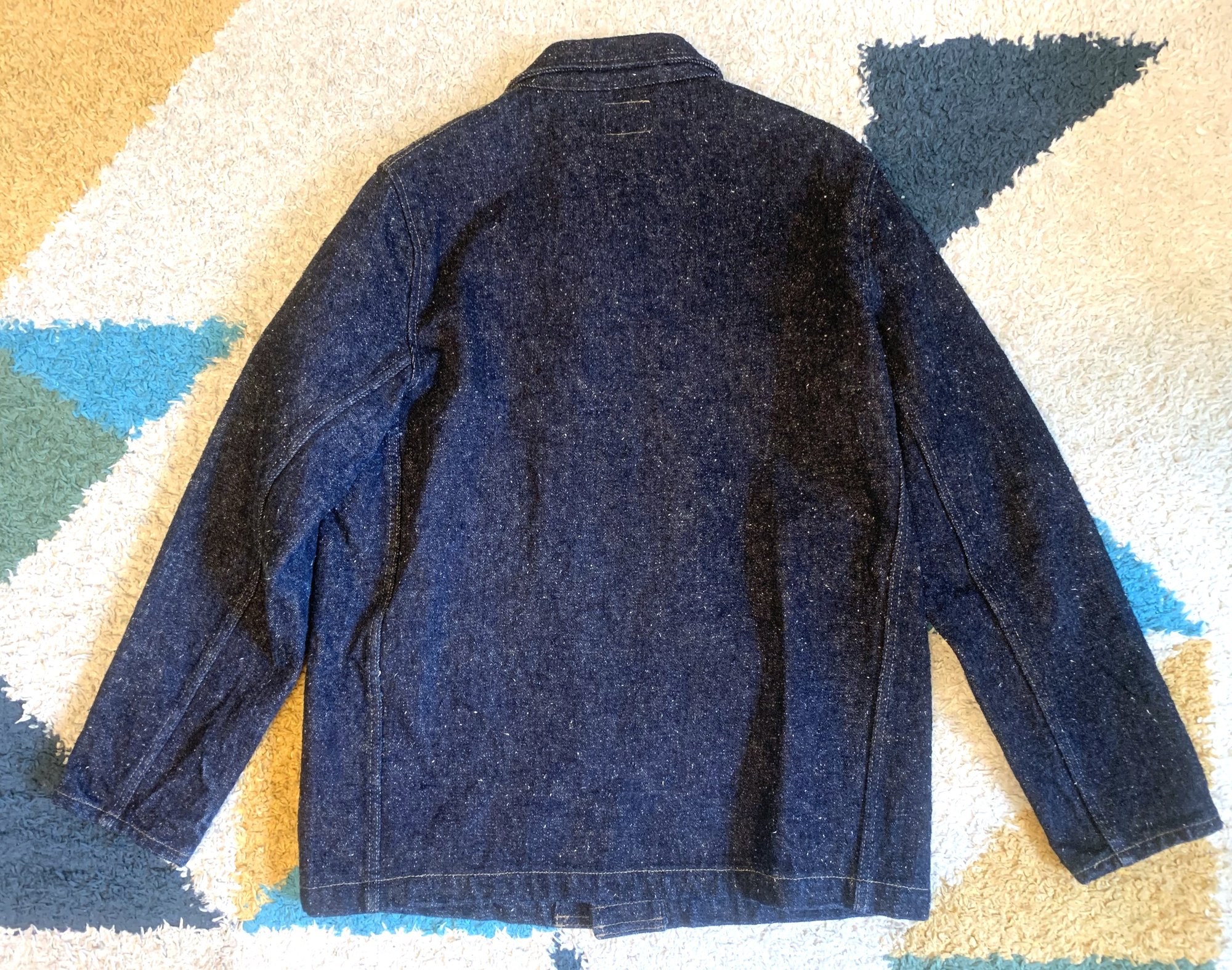 Size is labeled a 40 and fits like a standard medium. I measure the chest at 20” / 52cm, shoulders at 17” / 43cm, length at 28” / 72cm from the base of the neck and sleeves at 24” / 60cm from the shoulder. The jacket comes in lightly used, very good shape. There is some minor fading of the indigo here and there, but no holes, tears or stains. Made in Japan.