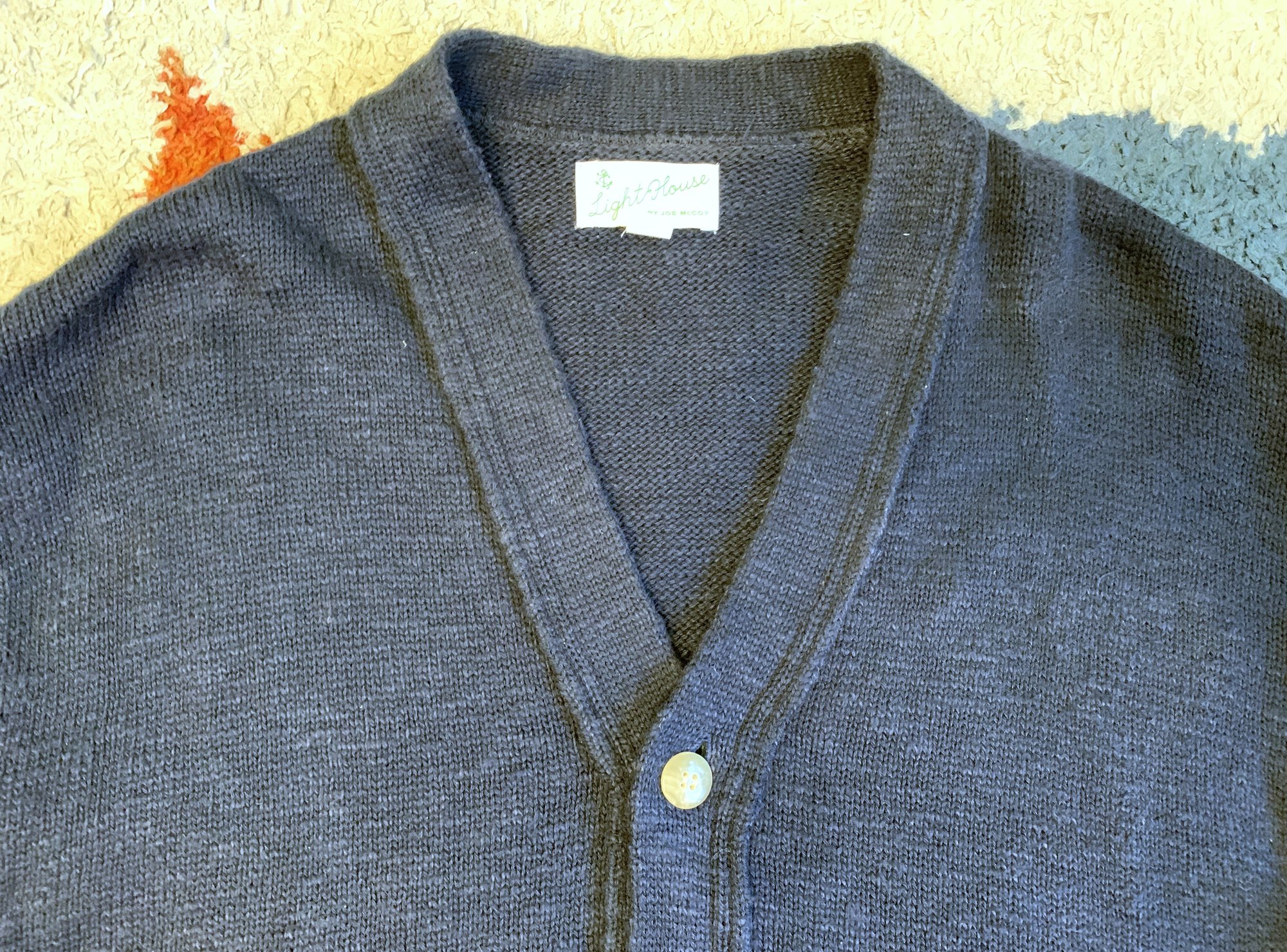 This is a more recent release from the McCoys spring-summer 2024 collection. Inspiration comes from classic ivy-style sweaters from the US in the 1950s and 60s. Material is 100% cotton in a highly textured knit. This is technically a spring-summer piece but in my opinion the weight is pretty substantial here and the sweater can work pretty much year-round. It features two side pockets along with six horn buttons for closure.