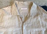 This shirt comes in a 51% linen, 49% cotton blend. It is nicely textured as you can see on the detailed pics, light in weight and highly breathable. This is an ideal piece for the warmer weather. Fabric takes center stage here with the other details in service of the material. It comes in a relaxed silhouette, making it highly comfortable and easily integrated into a wide range of looks. Details include extra white stitching at the bottom of the shirt, an open collar, dual chest pockets and shell buttons.