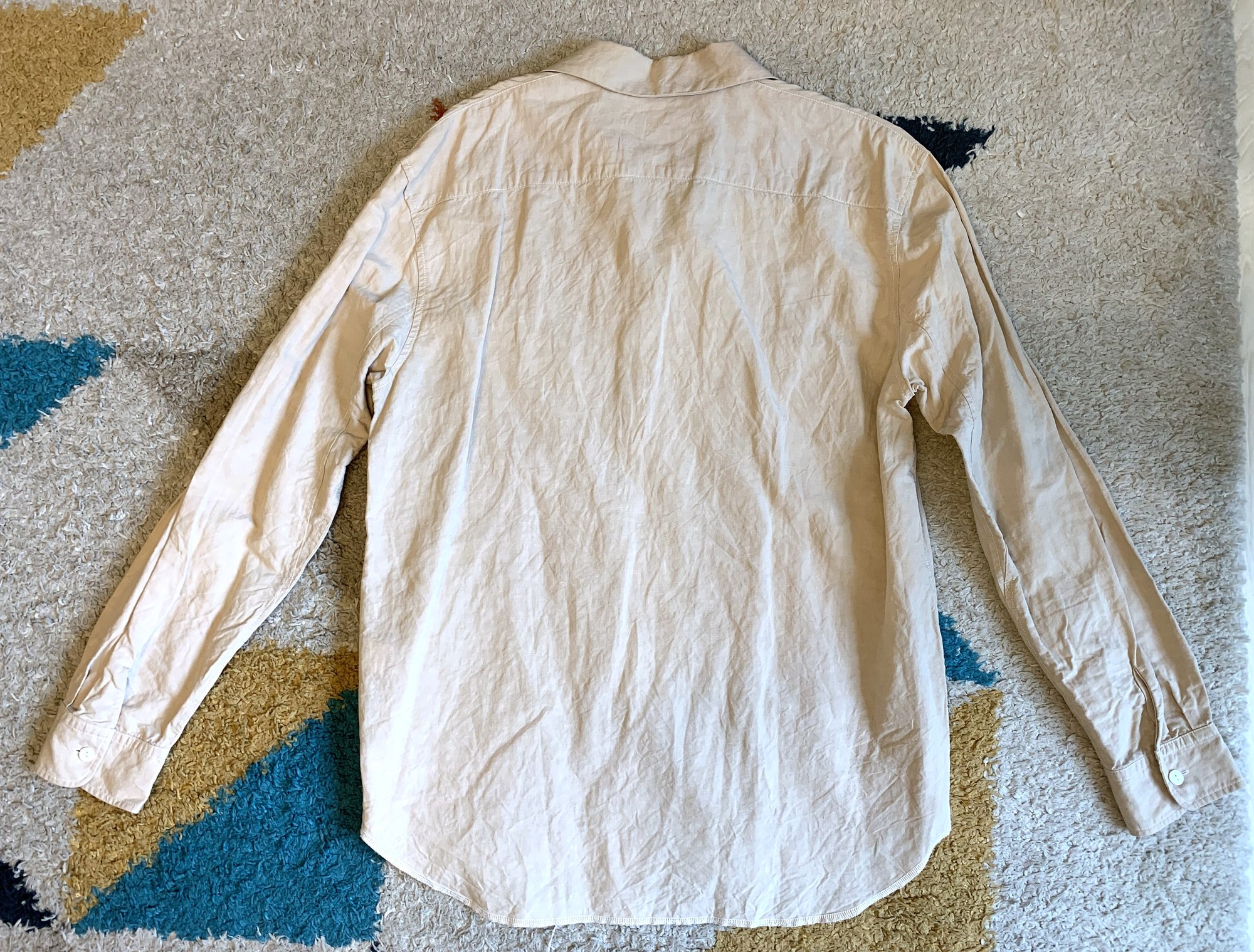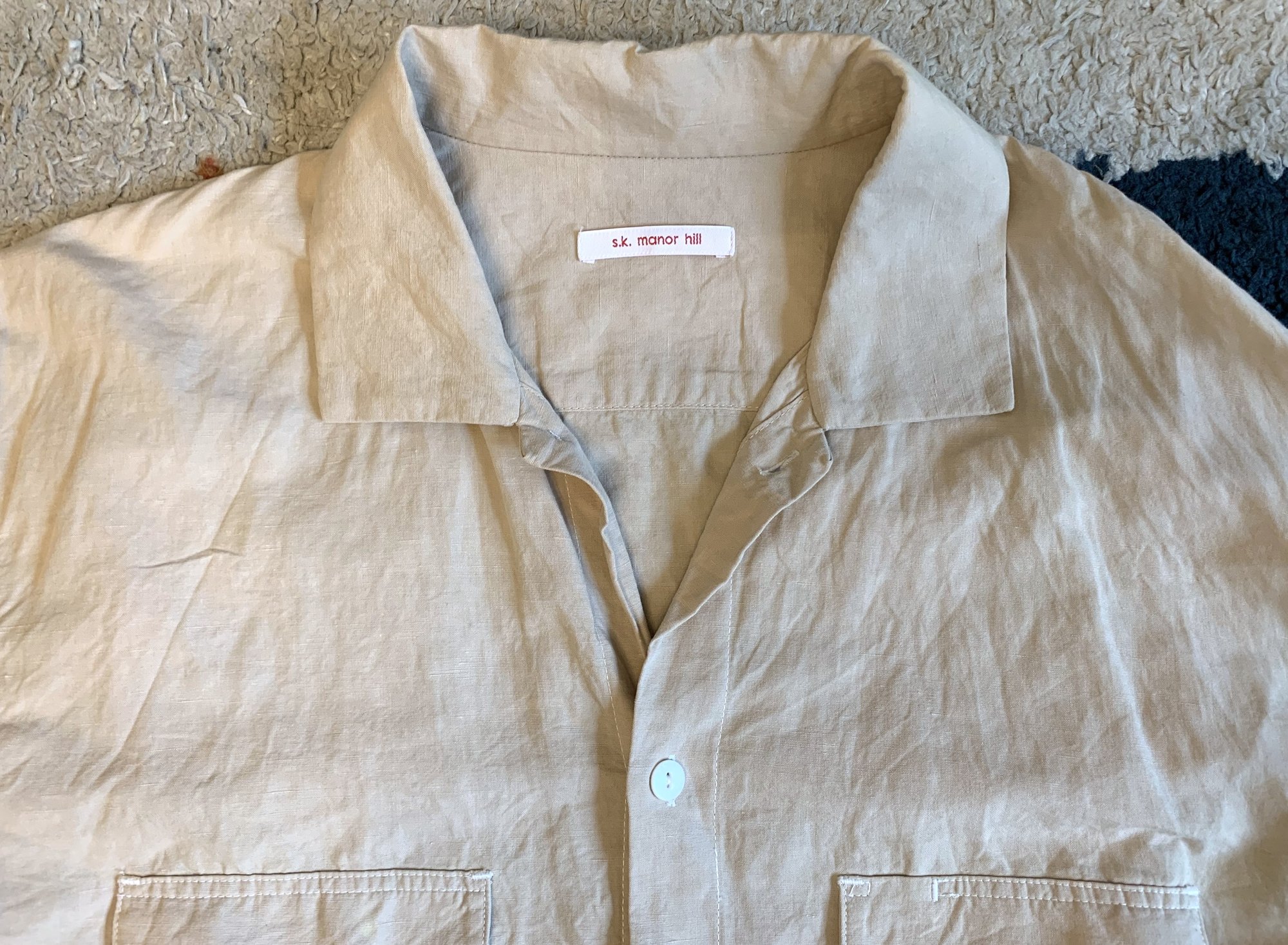 For sale here is a shirt from SK Manor Hill. The SK Manor Hill label is somewhat newer, starting in 2016. Designer Dominic Sondag studied fashion design in Italy and had a tenure with Engineered Garments and Daiki Suzuki. For SK Manor Hill the emphasis is on natural fabrics and entirely American-made construction. The details are always present, and silhouettes tend for the more relaxed.