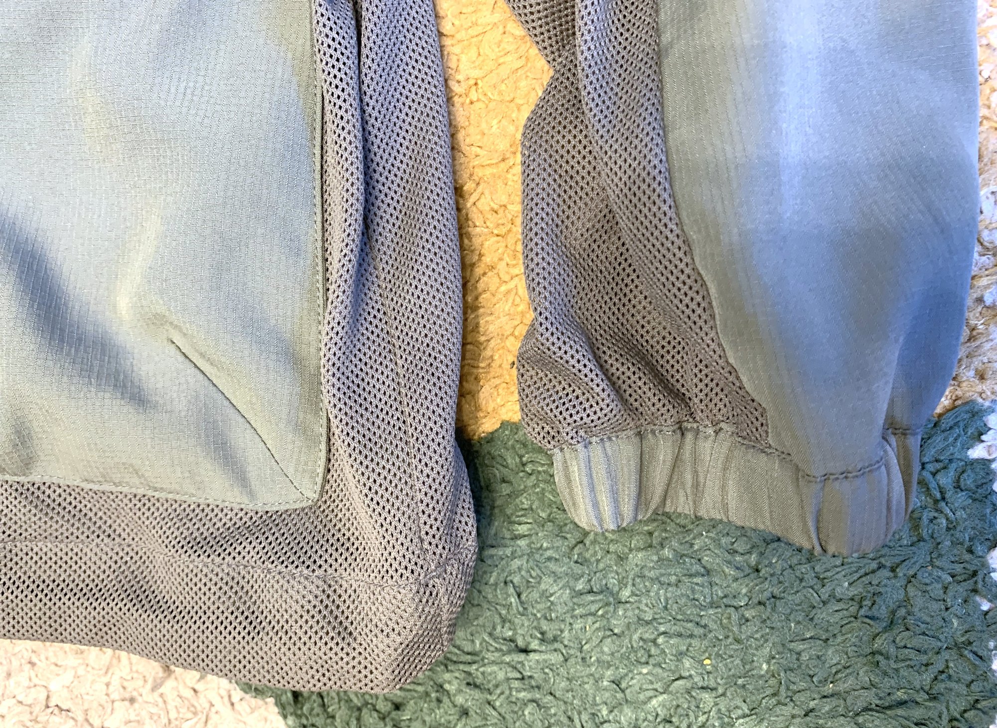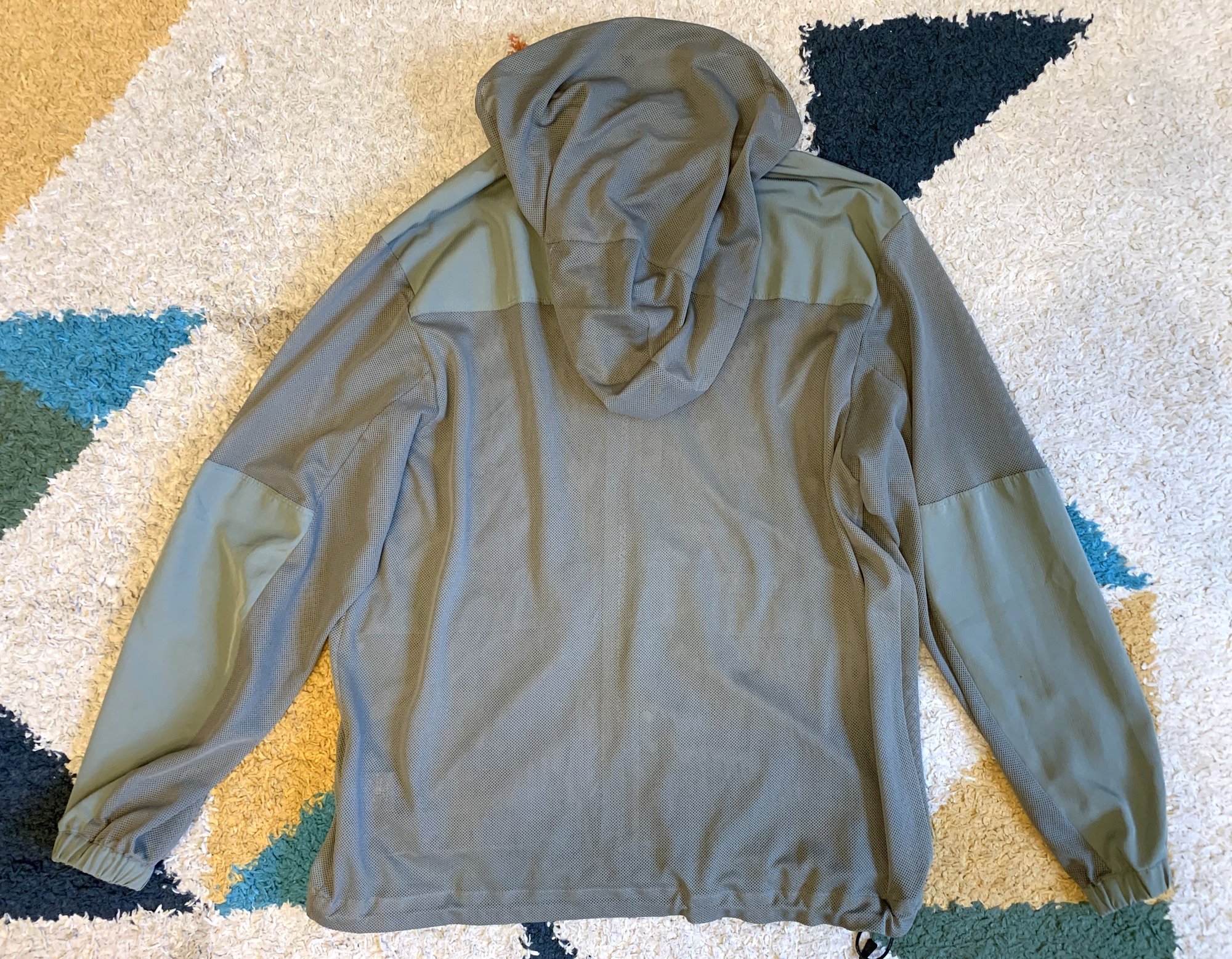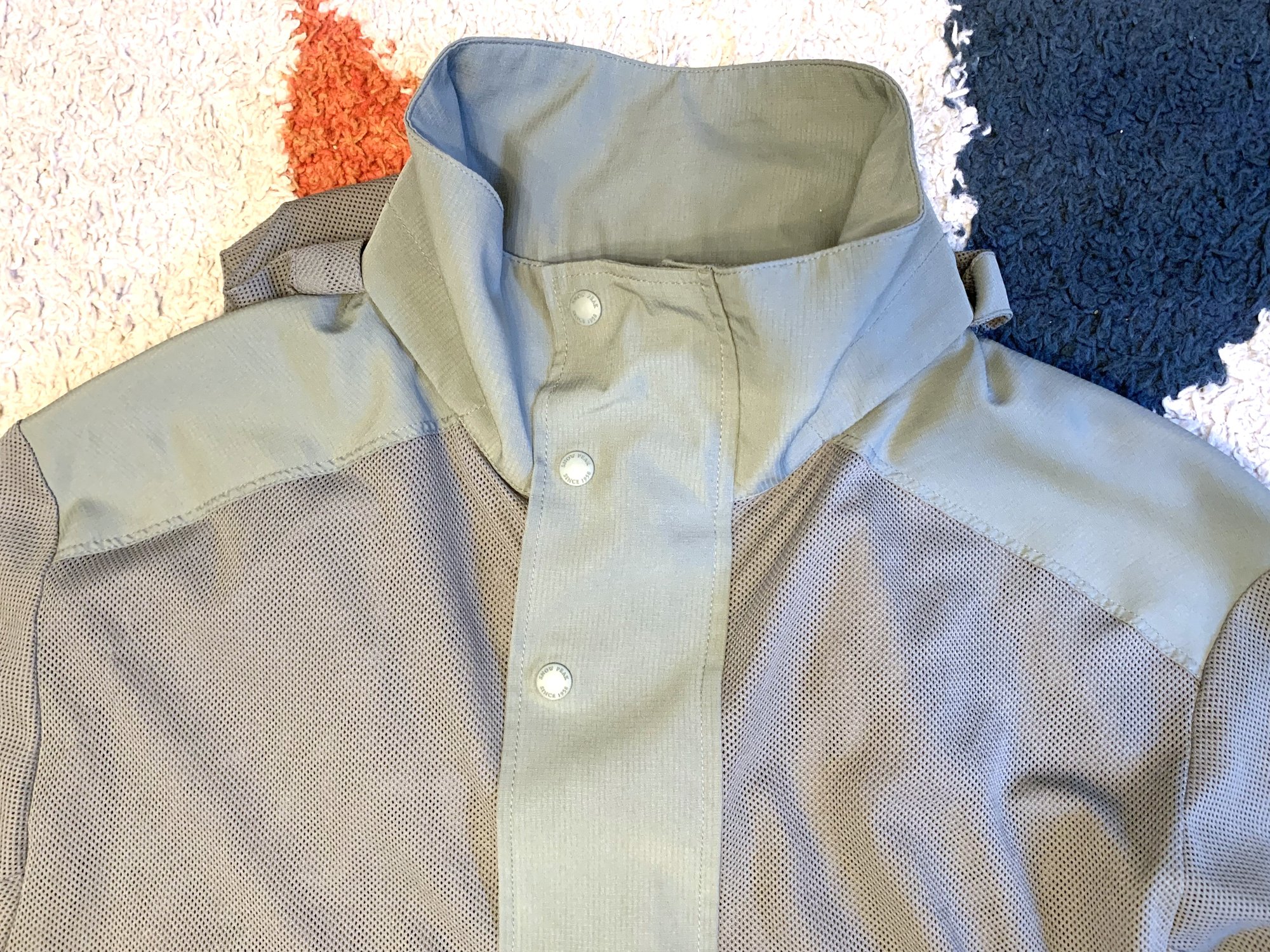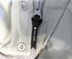 This is Snowpeak’s “insect shield” jacket from the spring-summer 2022 collection. The concept is both interesting and practical, where if you have spent any time outdoors in tropical or subtropical places (like Japan) in the summer, insects can be a big problem. Snowpeak offer a pretty unique solution here. We have what is largely a polyester mesh fabric, highly breathable and light in weight, with woven portions on stress points like the shoulders, neck, sleeves and pockets, reinforcing it and providing structure. There is a removable hood as well.