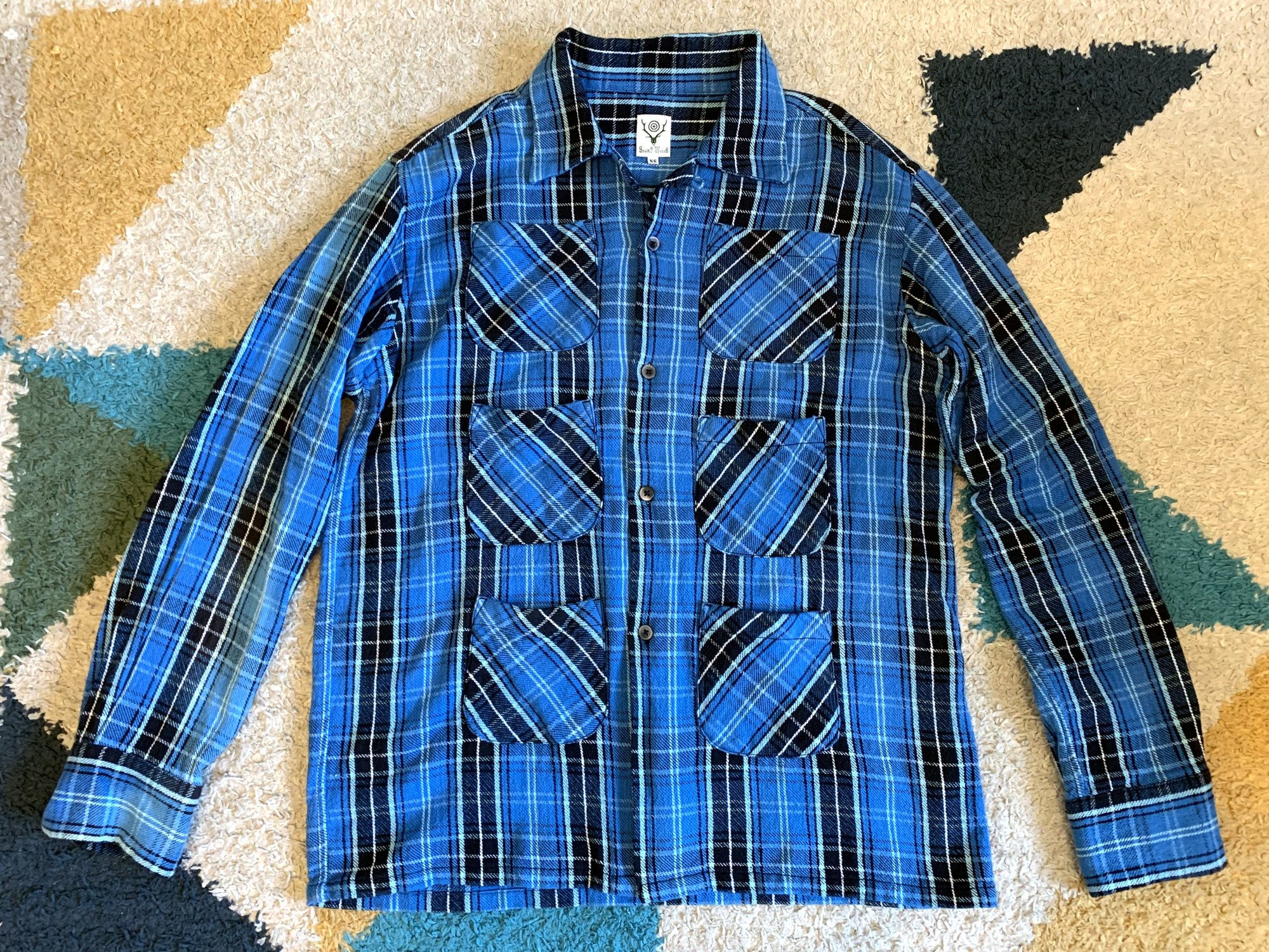 For sale here is a shirt from the South 2 West 8 label, part of the family of labels run by the Nepenthes company, the same people that produce Engineered Garments and Needles, among other labels. Each of these brands has their own particular focus, and South 2 West 8 seems mainly oriented around outdoors wear, although they do some pretty radical reinterpretations.