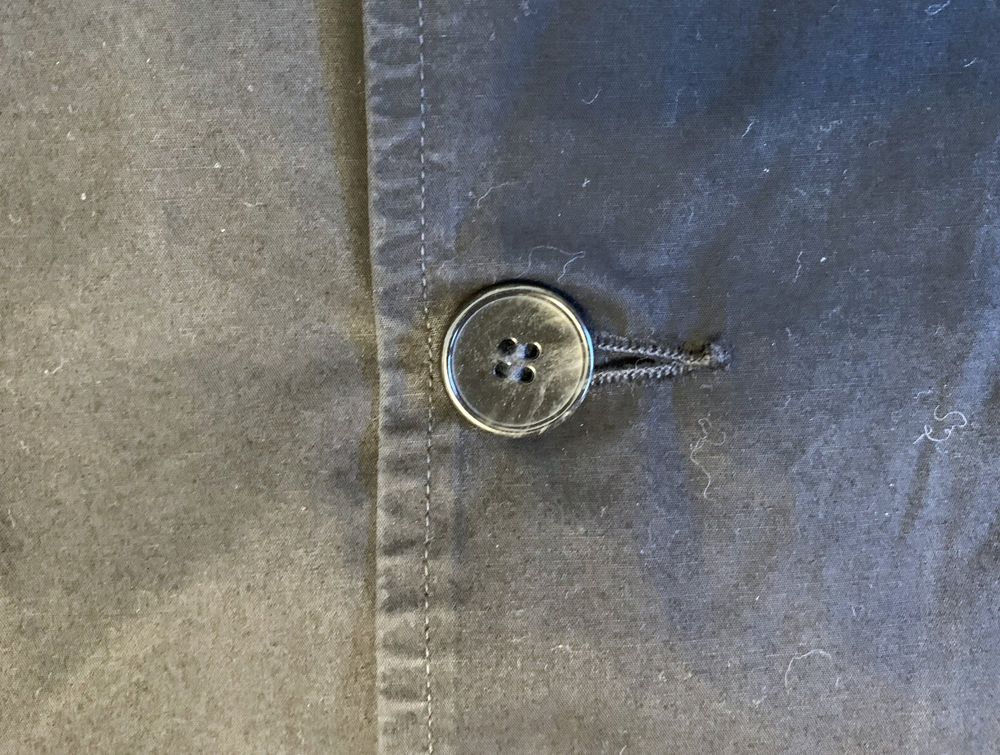 In this case we a very high quality light weight jacket, done in the vintage style with three button closure in a very nice 100% cotton “typewriter” cloth. Spellbound describes the fabric as a long-fiber, fine cotton thread with a somewhat wrinkled and worn-in look due to the washing and processing of the fabric. It is intended to be casual and easy to wear, cut in a relaxed fit to allow easy layering when necessary. The idea is to create a garment that can be worn most of the year, accommodating a wide range of styles and fits. It’s a timeless piece, well made and sure to last.