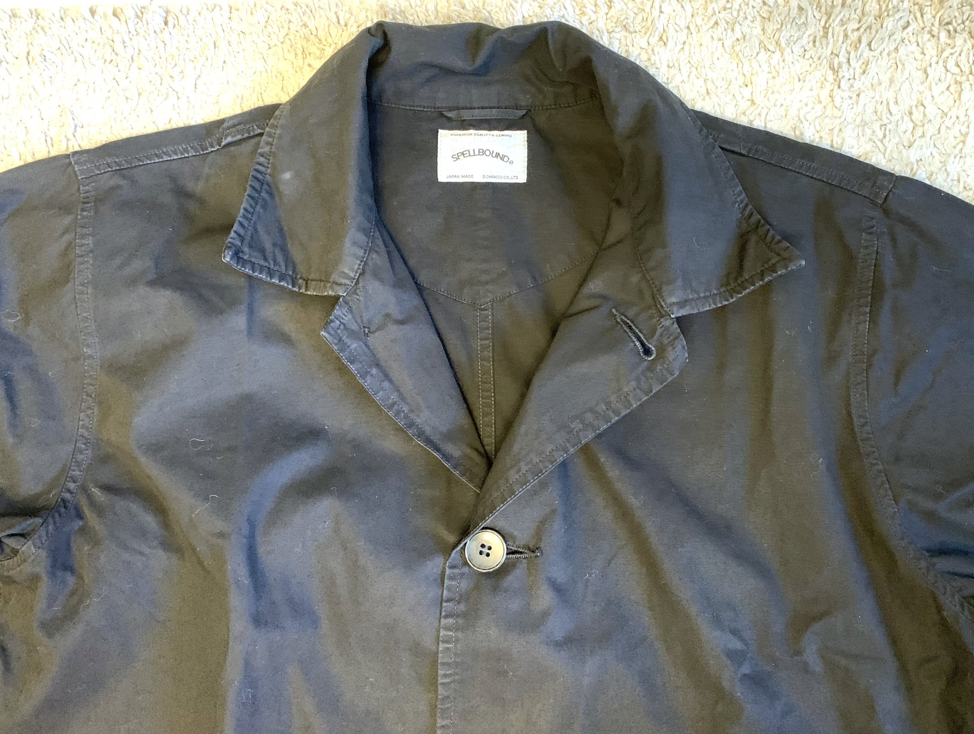 For sale here is a half coat from the Spellbound label, another in a long line of Japanese “American casual” labels. Spellbound is strongly influenced by classic American workwear, although they tend to release their interpretations of workwear staples rather than simple re-hashes. As always with these types of labels, production runs are very small, with limited distribution even in Japan. Availability outside of Japan is even tougher, where only a handful of specialists stock them. Quality, however, is quite high. Production is in Kojima city in Japan, the heart of Japan’s denim industry. In fact, Spellbound’s parent company, Domingo, is one of the oldest workwear manufacturers in Japan. These are definitely painstakingly-made garments, done to a very high standard.