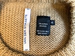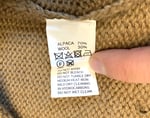 Size is labeled a medium and fits a bit relaxed. I measure the chest at 21” / 53cm, shoulders at 20” / 50cm, length at 26” / 66cm and sleeves at 23” / 58cm from the shoulder. The sweater comes in lightly used, good shape. There is a bit of piling on the arms but otherwise no holes, tears or stains. Made in Peru.