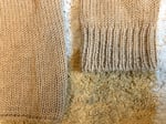 This sweater comes in a 70% alpaca, 30% wool blend in a medium gauge. There is a really excellent texture to the weave and it is insulating as you would expect. I am not sure if this is a hand-knit item but it does look that way. Still, it is a timeless design in a somewhat relaxed silhouette. It is easy to wear, will match pretty much everything and will keep you warm.