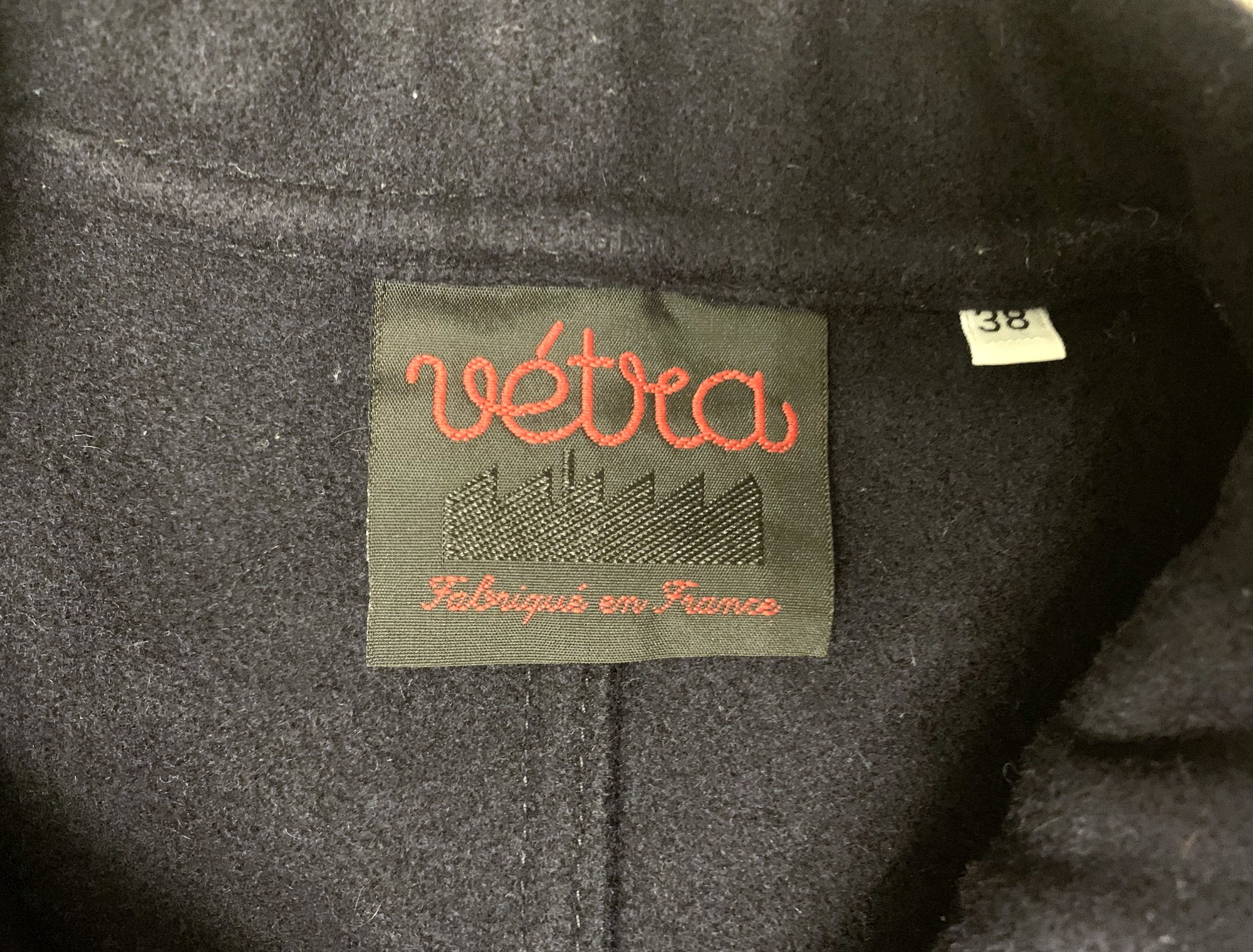 Size is labeled a 38 and fits like a medium. I measure the chest at 21” / 53cm, shoulders at 17” / 43cm, length at 28” / 71cm and sleeves at 22.5” / 57cm from the shoulder. The jacket comes in lightly used, very good shape with no holes, tears or stains. Made in France.