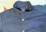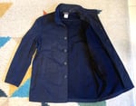 Silhouette is based on the classic overcoat, done in a medium weight cotton moleskin. Moleskin is a densely woven cotton, naturally wind and water resistant, and a staple of French workwear. Weight here is definitely heavier than a standard cotton, insulating but at the same time not super heavy duty. As such, I believe this is a good fall/spring piece, coming in at just the right weight not to over-heat you, but at the same time still nicely resilient.